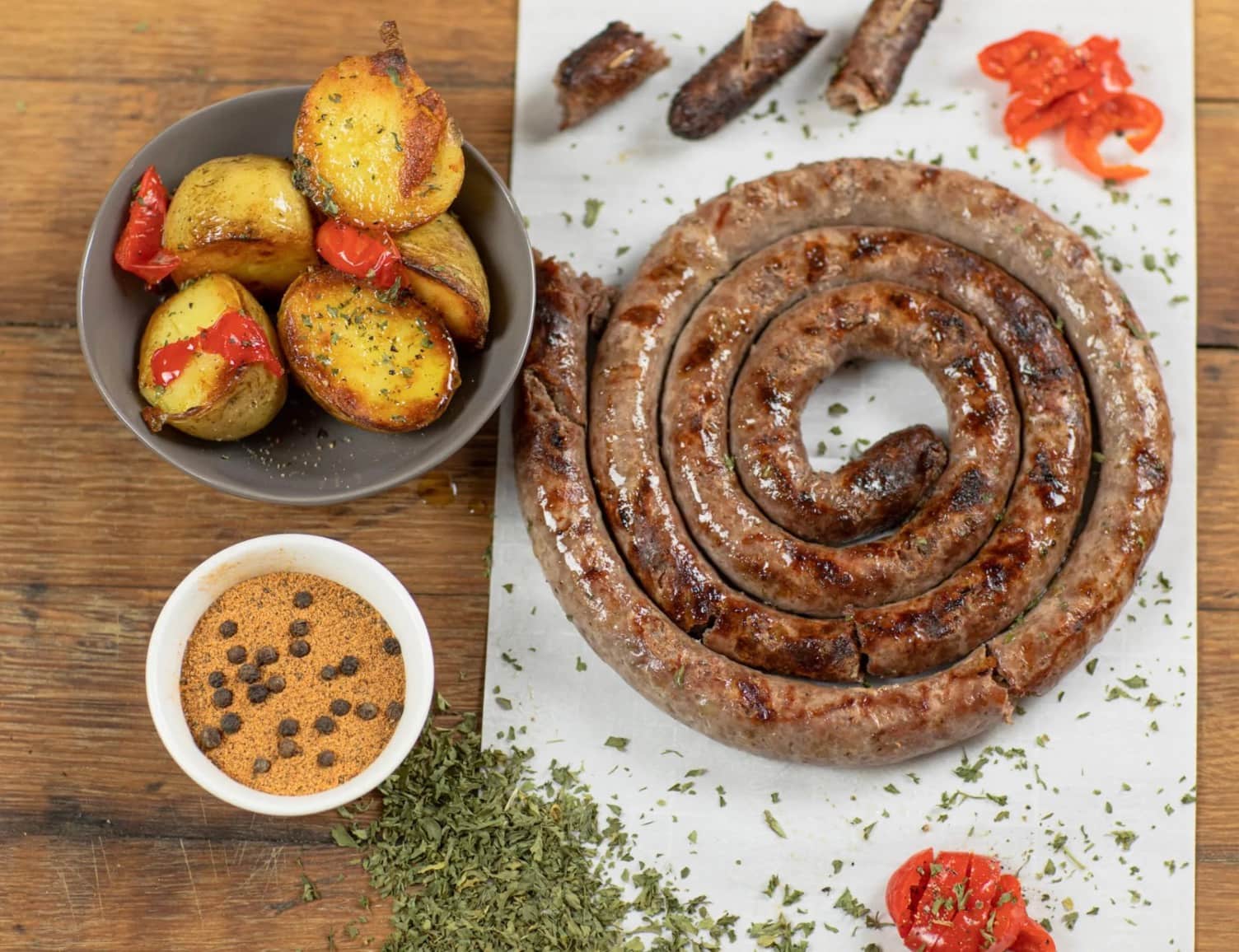 Một trong những món phổ biến nhất tại Nam Phi là boerewors, hay còn gọi là “xúc xích nông trại”. Đây là loại xúc xích làm từ thịt bò băm và được thưởng thức trên khắp đất nước. Dù trông đơn giản, boerewors phải tuân theo quy định nghiêm ngặt: ít nhất 90% thành phần phải là thịt. Phần còn lại gồm các loại gia vị như đinh hương, nhục đậu khấu và hạt mùi, hoặc đôi khi có thêm thịt cừu hay thịt heo để tạo hương vị đậm đà hơn. Boerewors là món quen thuộc trong các buổi braai và thường ăn kèm roosterkoek, một loại bánh mì nướng.