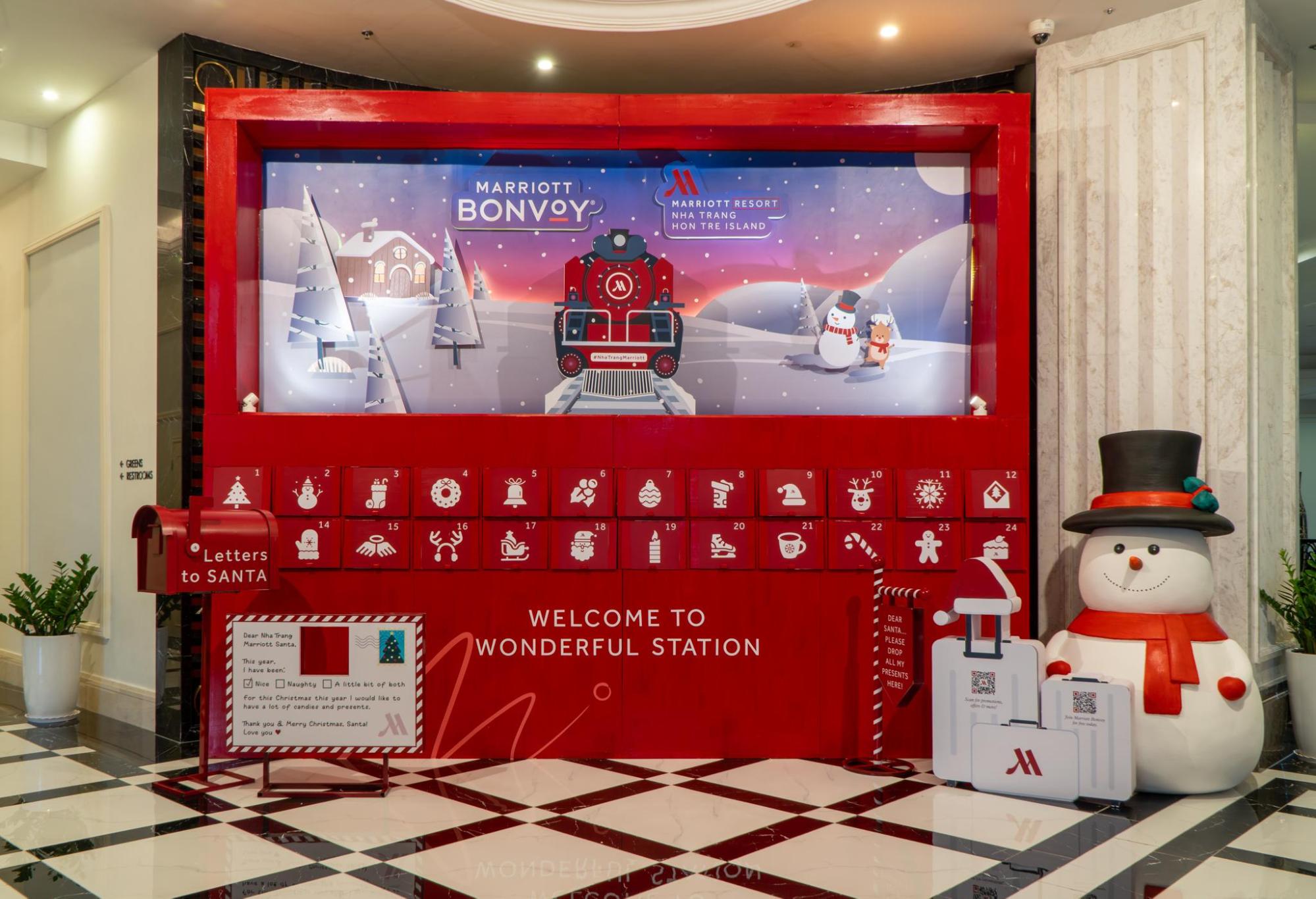 Mùa lễ hội tại Nha Trang Marriott Resort sẽ chính thức bắt đầu với Lễ thắp sáng cây thông vào đêm 6 tháng 12, tạo nên bầu không khí ấm cúng và nhiệm màu mở ra một xứ sở diệu kỳ. Kéo dài đến 25 tháng 12, mỗi ngày, một bất ngờ thú vị sẽ chờ đón các thiên thần nhỏ tới khám phá tại nghi thức Đếm Ngược Lịch Giáng Sinh (17:30 đến 18:00 diễn ra trong khuôn viên sảnh chính. Đặc biệt hơn cả, trong khoảng thời gian này, các vị khách nhí sẽ có cơ hội viết ra những điều ước đã ấp ủ từ lâu để gửi tới ông già Noel.