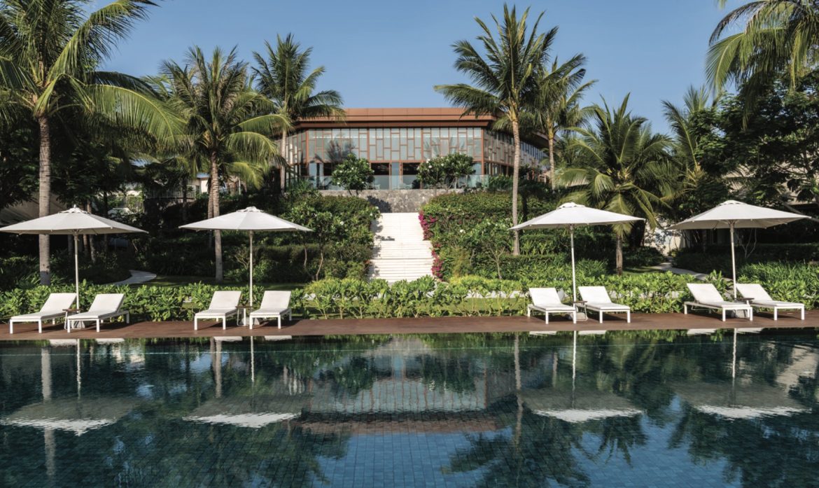 Với 580 biệt thự và phòng suite hướng biển, Resort Cam Ranh được thiết kế để hòa mình vào nhịp điệu của biển cả, với cửa sổ kính suốt từ trần đến sàn mở ra tầm nhìn bao quát ra biển. Bên cạnh 12 hồ bơi phân tầng độc đáo, 14 nhà hàng và quầy bar mang đến cho du khách những trải nghiệm ẩm thực quốc tế, từ hải sản tươi sống đến ẩm thực cao cấp tinh tế. Các gia đình có thể tận hưởng công viên nước, rạp chiếu phim, spa, câu lạc bộ trẻ em và thiếu niên cùng sân mini-golf 18 lỗ.