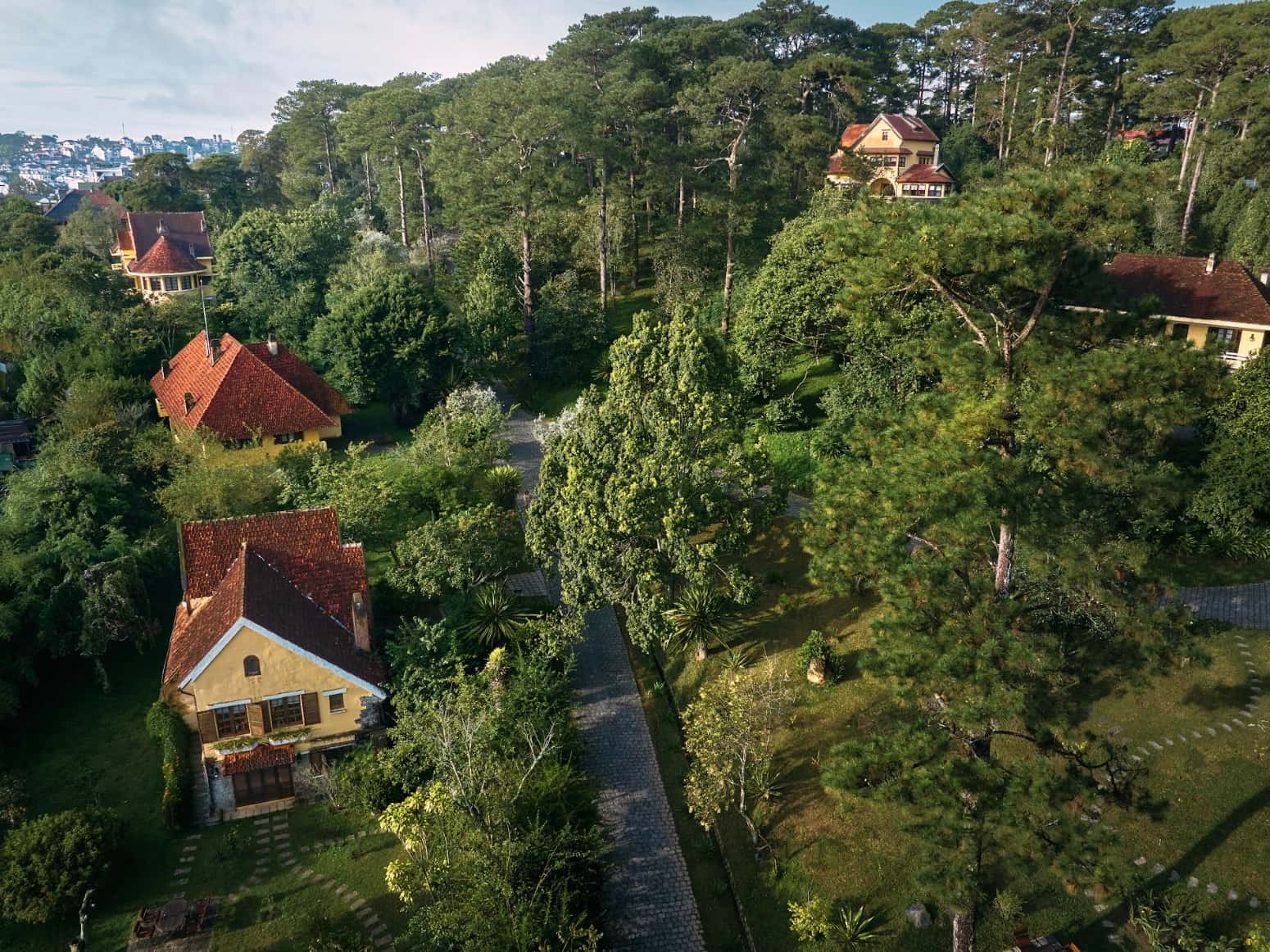 Tọa lạc trên ngọn đồi Lê Lai, khu nghỉ dưỡng mở ra tầm nhìn toàn cảnh thành phố Đà Lạt với đặc trưng thực vật vùng cao nguyên Lâm Viên, nổi bật với triền thông xanh bất tận, và những loại cây bản địa Đà Lạt. Bao quanh toàn bộ các căn biệt thự là những mảng xanh mướt mắt được chăm sóc tỉ mỉ, xen kẽ lối đi lát đá, bậc tam cấp phủ rêu và những loài hoa theo mùa.