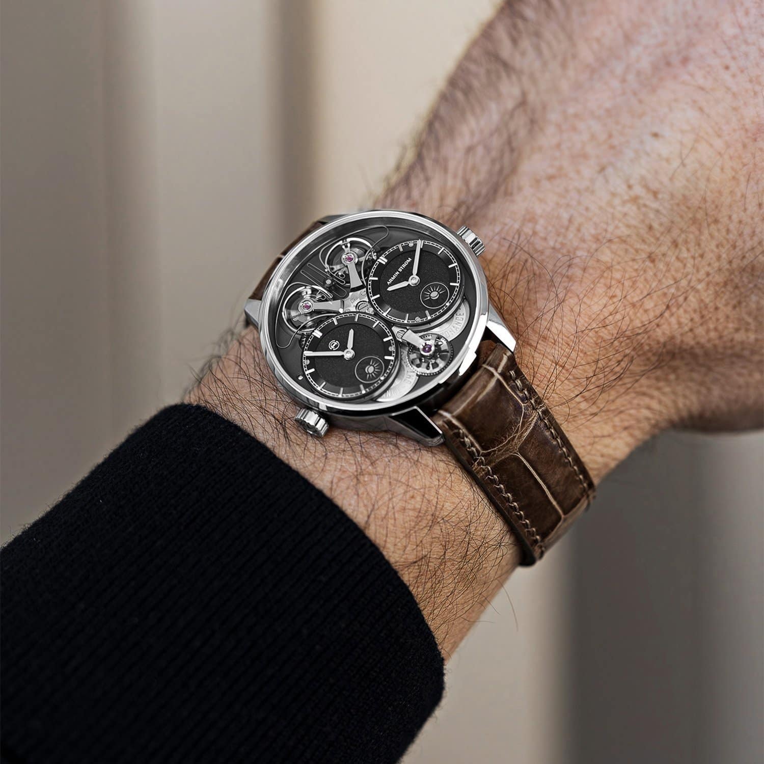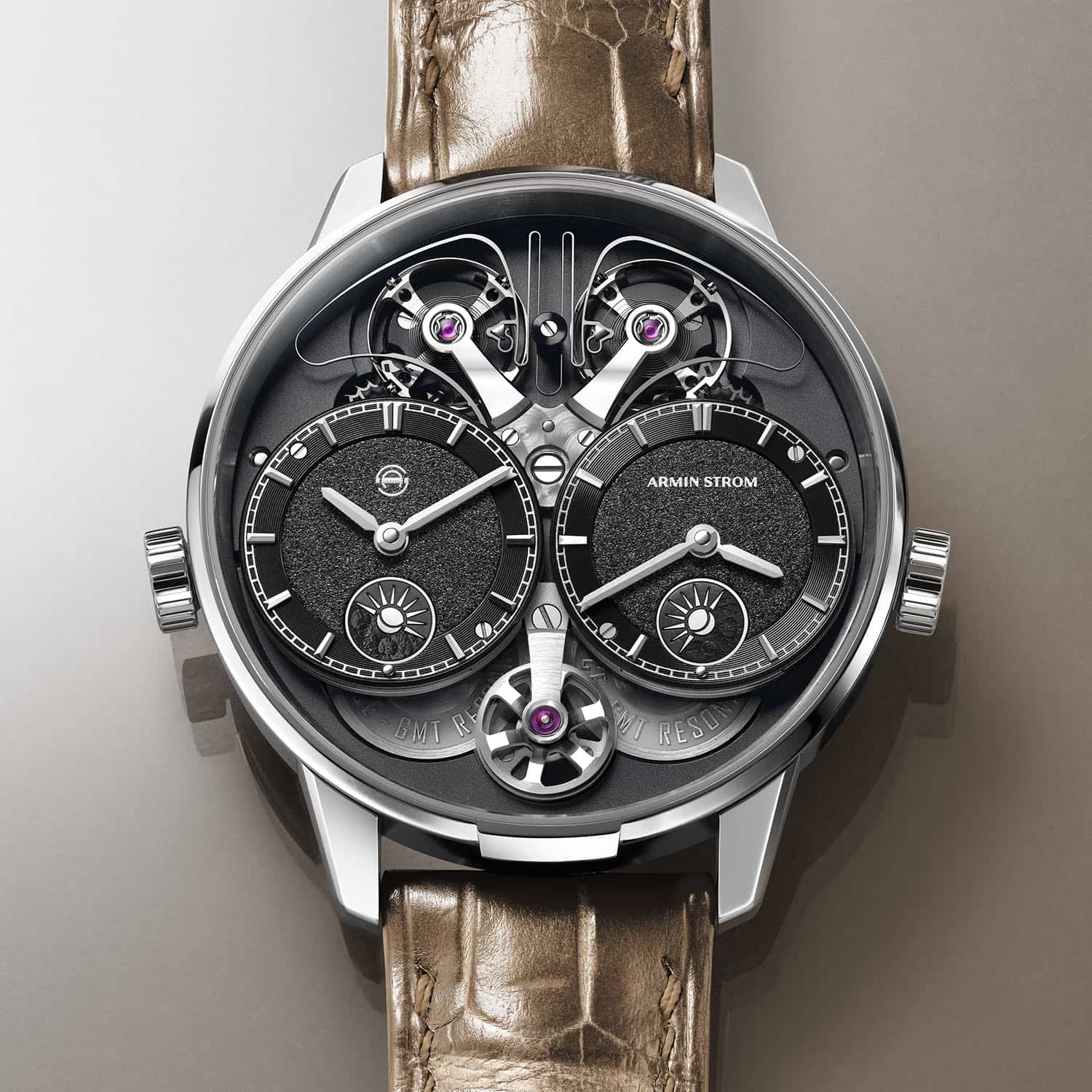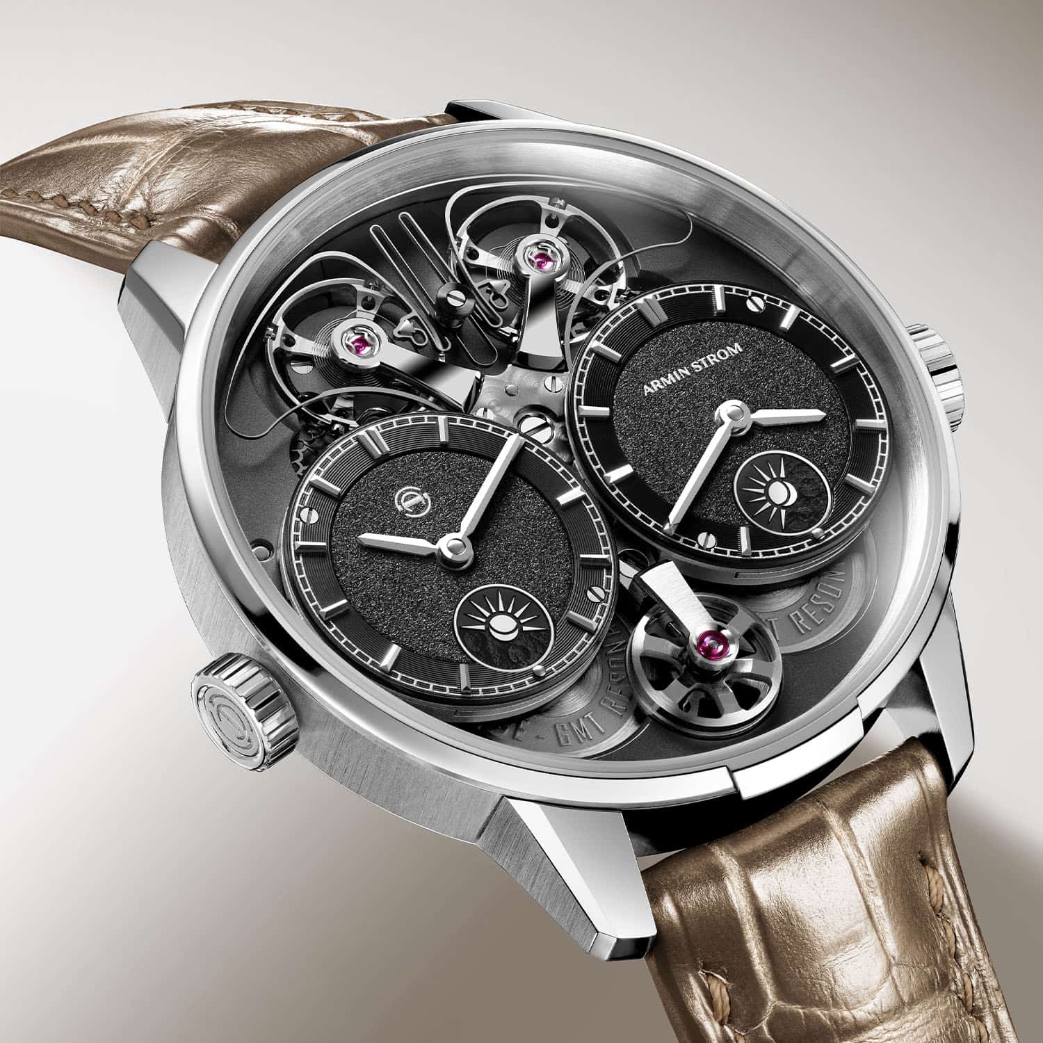 Armin Strom, thương hiệu đồng hồ độc lập danh tiếng, nổi bật nhờ việc khôi phục hiện tượng resonance (cộng hưởng) trong đồng hồ đeo tay. Năm ngoái, hãng giới thiệu bộ máy in-house thứ 18, calibre ARF22, trên phiên bản Dual Time GMT Resonance bằng vàng trắng. Năm nay, bộ máy trở lại trong tông monochrome đen tinh tế và vỏ thép, mang tên Dual Time GMT Resonance Manufacture Black Edition, hiển thị hai múi giờ độc lập trên hai mặt số riêng biệt, vận hành nhờ hai bộ máy đồng bộ.