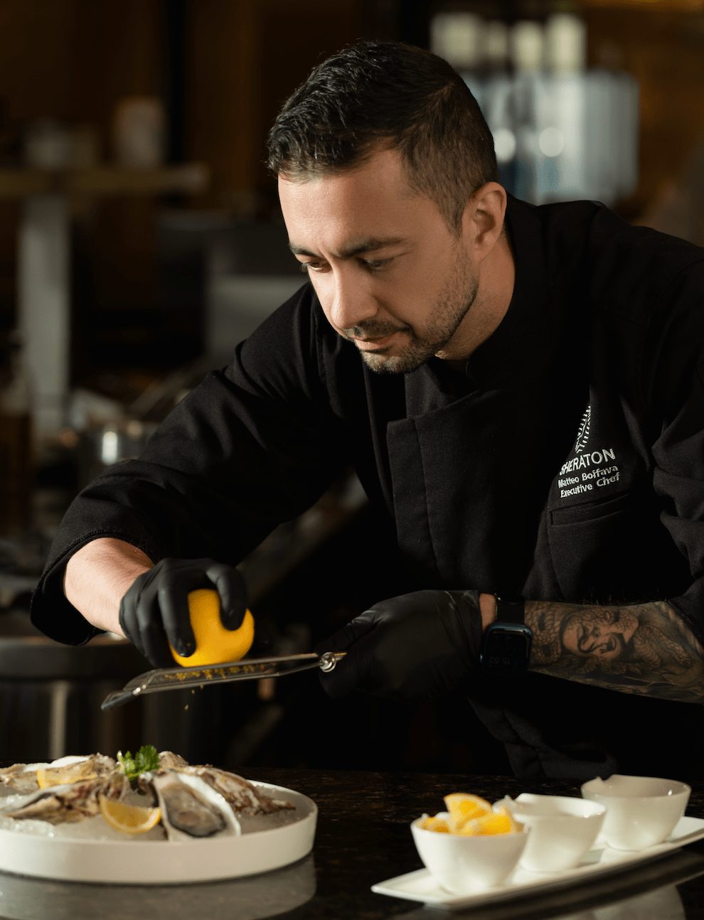 Đến với Sheraton Grand Danang Beach Resort & SPA, bếp trưởng Matteo sẽ giám sát toàn bộ hoạt động ẩm thực, từ các nhà hàng cho đến quầy bar nhằm nâng tầm trải nghiệm ẩm thực cho cả du khách quốc tế và thực khách địa phương. Triết lý của ông tập trung vào sự sáng tạo, tính chân thật và những trải nghiệm đáng nhớ, kết hợp tinh hoa ẩm thực Ý và Địa Trung Hải cùng nguồn cảm hứng từ nguyên liệu và văn hoá địa phương, bếp trưởng Matteo hứa hẹn mang đến một sự pha trộn độc đáo giữa truyền thống và sáng tạo, đáp ứng khẩu vị đa dạng của mọi tín đồ ẩm thực.