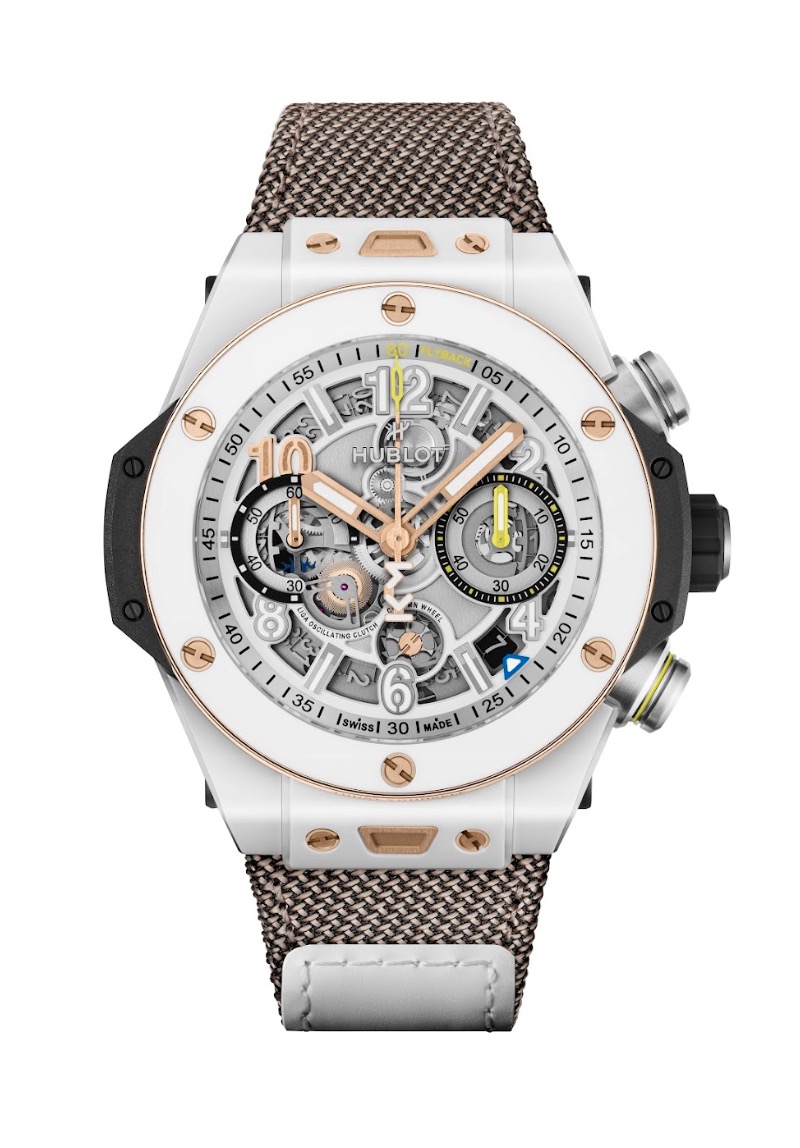 Calibre Unico trở thành tâm điểm với bánh xe cột, ly hợp dao động và chức năng flyback được hiển thị rõ ràng hơn bao giờ hết. Các chi tiết màu vàng và King Gold làm nổi bật những yếu tố quan trọng, gợi nhắc đến những cột mốc kỷ lục và phong cách thi đấu bùng nổ của Kylian trên sân cỏ. Bezel hai tầng bằng 18K King Gold và ceramic trắng được cố định bằng sáu vít chữ H King Gold. Big Bang Reloaded Kylian Mbappé được tạo ra dành cho những người dám tung cú sút quyết định.