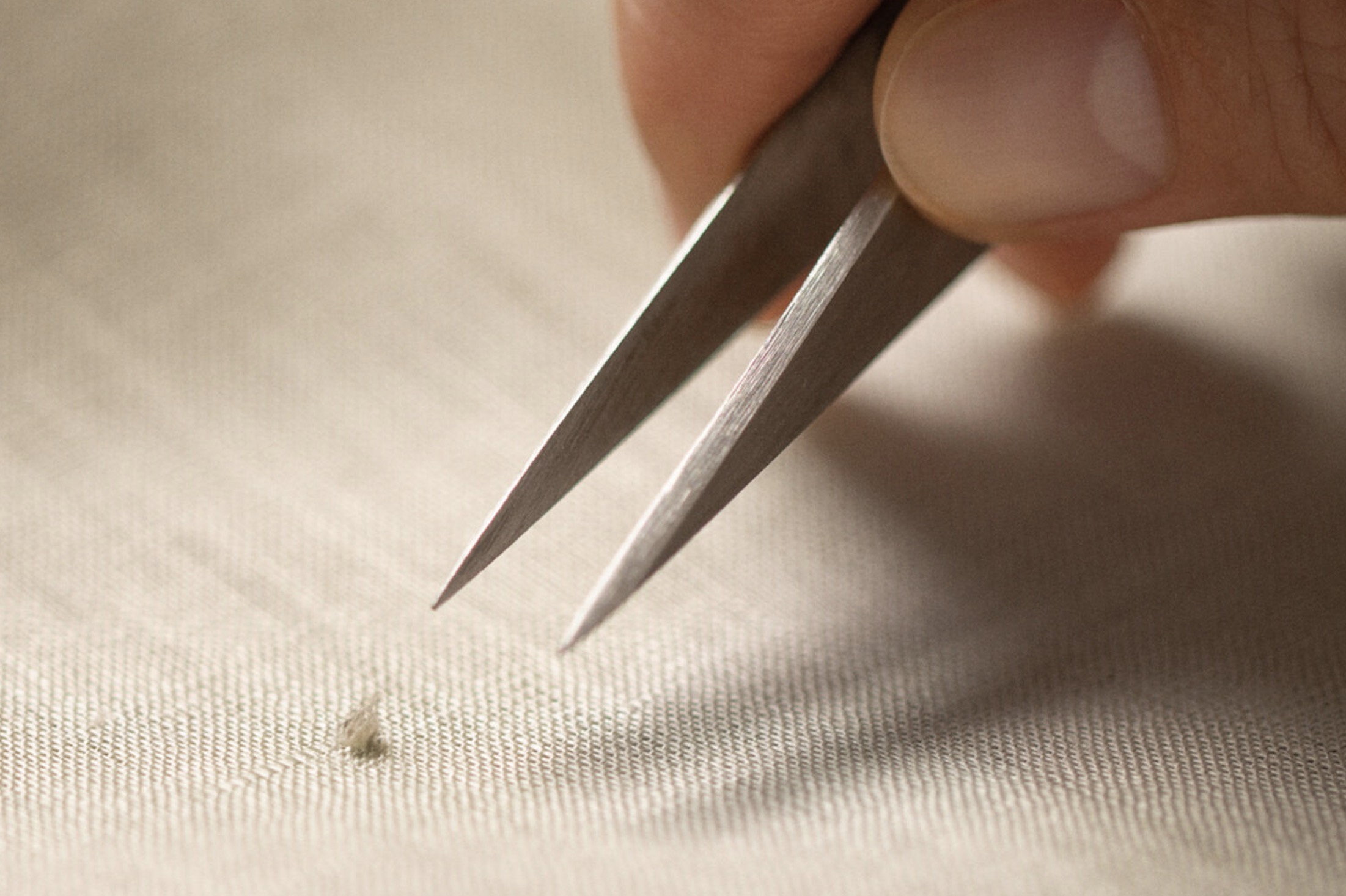 Các xơ vải thô tiếp tục được xử lý bằng phương pháp thủ công, thông qua kiểm tra trực quan và thao tác bằng tay. Sản phẩm đồng thời được hoàn thiện bằng các kỹ thuật may khác nhau cho từng bộ phận, như may phần gấu tay áo dưới hoặc may nẹp áo với ba lớp gấp, nhằm tăng độ bền trong quá trình giặt và sử dụng.
