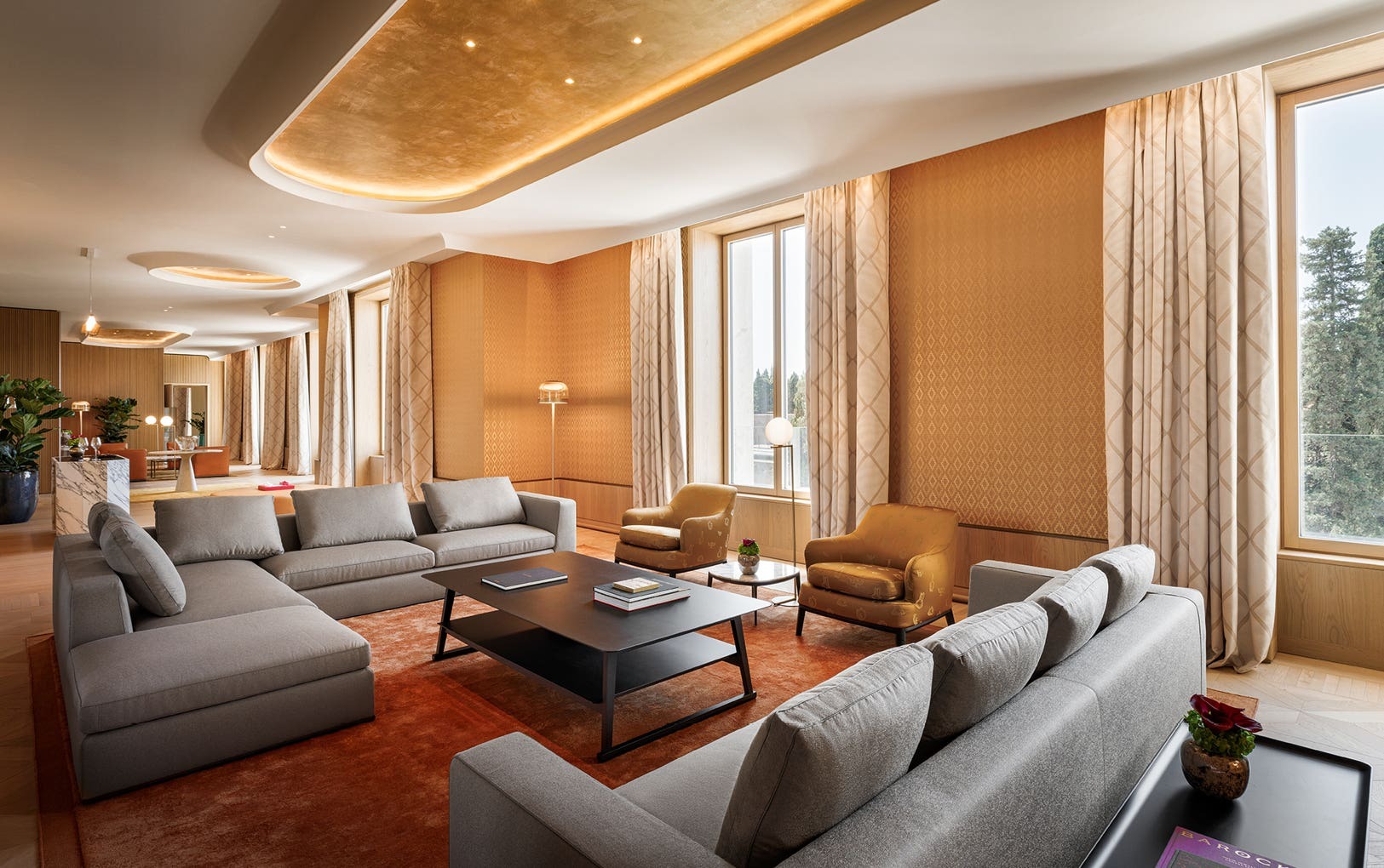 Các phòng và suite được thiết kế theo tinh thần của những căn hộ riêng tại Rome. Chất liệu như lụa, đồng, đá và gỗ được phối hợp để tạo cảm giác ấm áp, kín đáo. Ở Bvlgari Suite, tầm nhìn trải dài ra sông Tiber và Vatican không mang tính trình diễn mà giống như một đặc quyền yên tĩnh. Tại đây, thành phố hiện ra trải dài trước mắt bạn tựa như một phần của đời sống thường nhật, chậm rãi mà rất đỗi gần gũi.