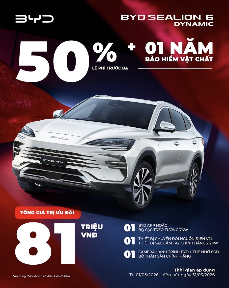 Thông qua chương trình “Khai xuân bứt tốc – Ưu đãi cực sốc”, BYD Việt Nam mong muốn tạo điều kiện để người tiêu dùng trong nước dễ dàng tiếp cận các dòng xe năng lượng mới ngay từ đầu năm. Đây sẽ là cơ hội sở hữu xe với nhiều lợi ích hấp dẫn, đồng thời mở ra hành trình trải nghiệm các giải pháp di chuyển hiện đại, tiết kiệm và thân thiện với môi trường.