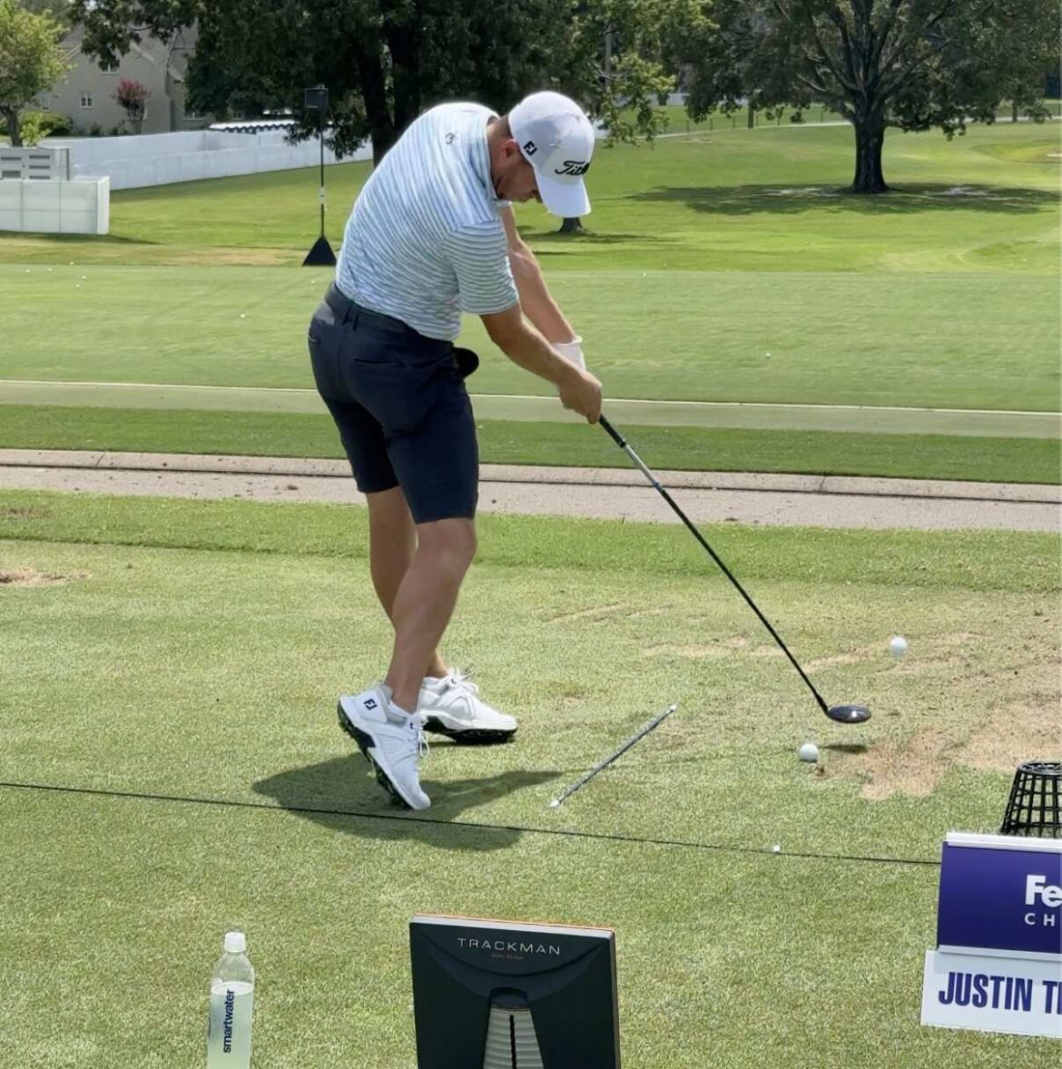 Mỗi lần thấy Justin Thomas trên sân tập, gần như lúc nào anh cũng đặt một vài vật cản phía sau mình và phía sau bóng. Đôi khi đó là vài cây gậy căn chỉnh cắm xuống đất (bạn có thể dễ dàng bắt gặp anh làm thế trên Instagram). Ở giải FedEx St. Jude, anh đặt một rổ bóng ngay sau và chếch bên phải bóng. Tiếp đó, anh lại dùng một bóng khác làm vật cản, đặt ngay phía trước bóng và lệch sang trái.