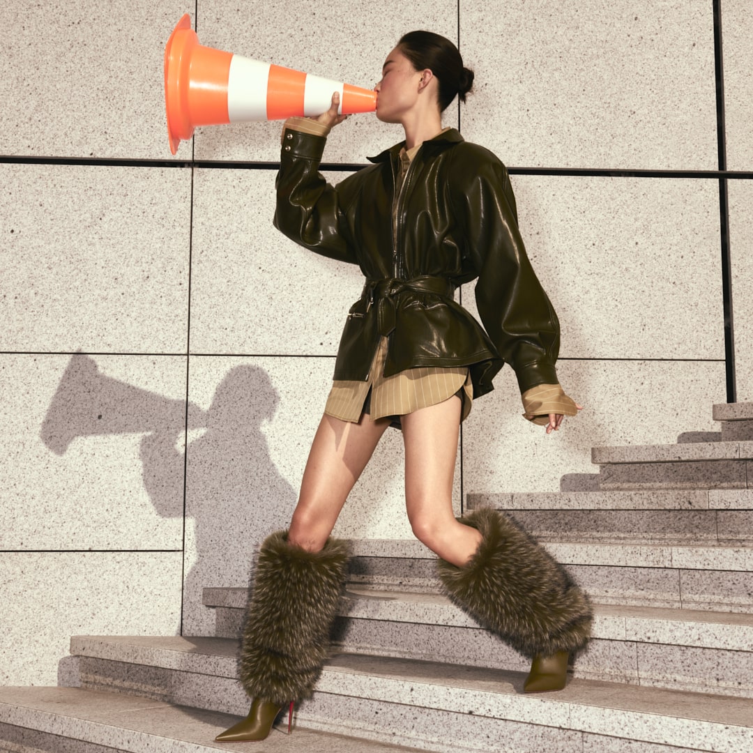 Một biểu tượng khác của Maison, Miss Z, trở lại với thiết kế lấy cảm hứng từ sân khấu cabaret – Miss Z Degrastrass Perla, gợi nhắc hình ảnh “đôi hài pha lê” thời hiện đại, gắn liền với những đêm Paris phù hoa. Phiên bản bệt và cao gót đều được đính đá và ngọc trai lấp lánh, tạo hiệu ứng ombré uyển chuyển từ mũi đến gót giày. Ở dòng sandal, Miss Z Poupi mở rộng chủ đề với phần mũi trang trí lông vũ bồng bềnh, điểm nhấn cho mỗi bước chân quyến rũ. Các thiết kế Erozeena flat và Erozee heel vẫn giữ trọn đặc tính êm ái của dòng Miss Z với quai mảnh tinh tế nơi cổ chân, trong khi Yangzee – đôi bốt cao gối dành cho mùa đông muộn – khoác lên mình lớp lông nhân tạo mềm mịn như tuyết, thể hiện vẻ sang trọng của Miss Z theo một cách khác. Đến mùa hè rực rỡ, Miss Z tiếp tục biến hóa với các phiên bản slingback gót thấp, trung và cao – và đặc biệt, đôi mule gót kitten Mulazee được ra mắt độc quyền bằng chất liệu vải taffeta. Nút thắt ton-sur-ton nơi mũi giày tôn lên đường cong cổ chân, làm nổi bật nét nữ tính và thanh thoát cho bàn chân.