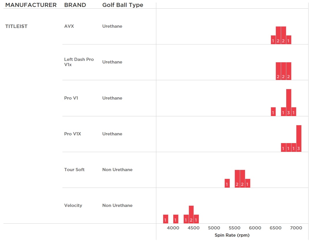 - Titleist Tour Soft: Hiệu suất ổn định nhất, đạt khoảng 5.900 vòng/phút, ngang ngửa với TaylorMade Tour Response.