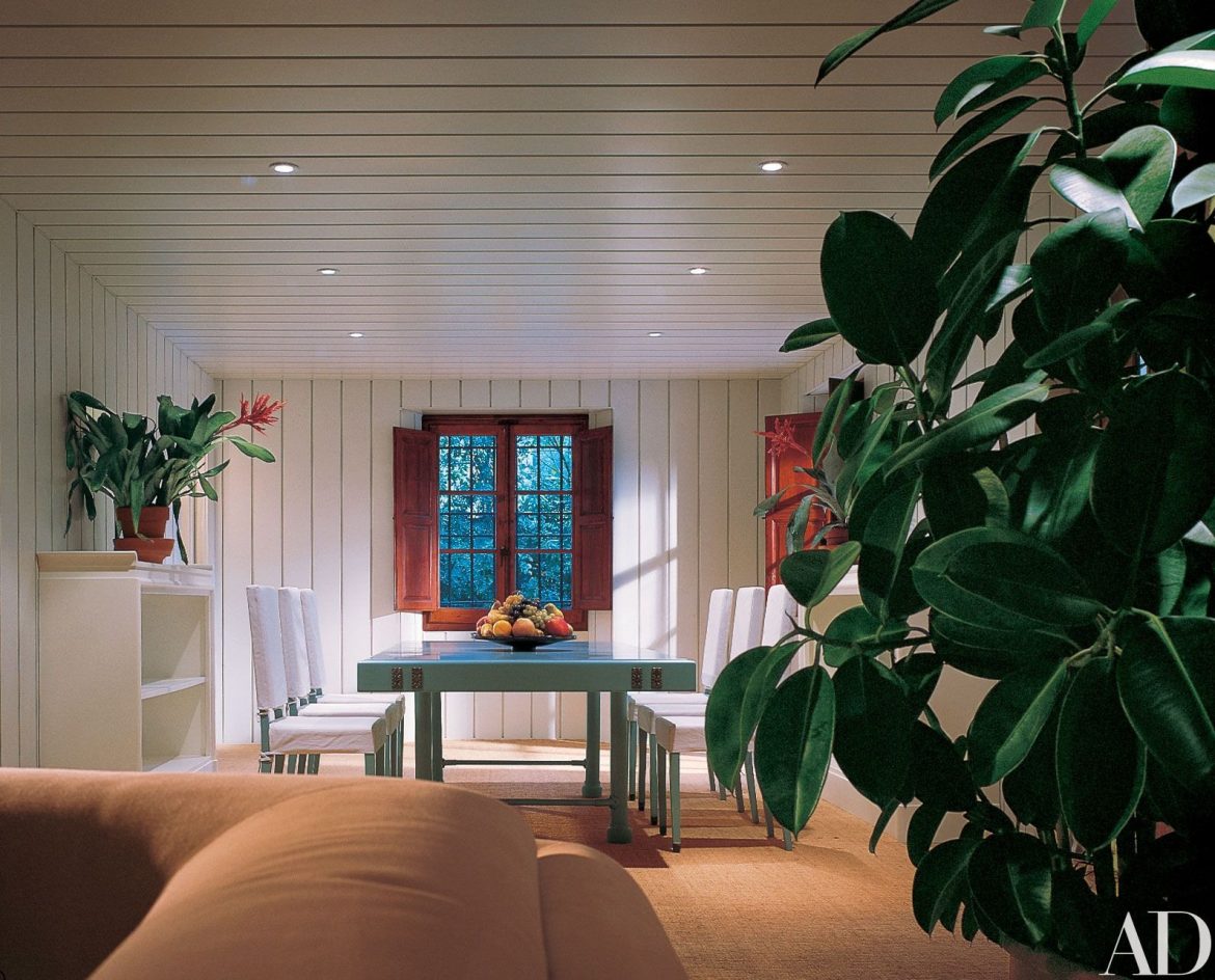 Ngôi nhà vốn là một trang trại xưa, nép mình giữa vườn cây, biển cả và nắng Địa Trung Hải. Armani giữ nguyên những bức tường đá, mái ngói đỏ sẫm và khung cửa gỗ bạc màu như một lời tri ân với lịch sử. Không phô trương, không biến đổi hào nhoáng, phần ngoại thất gần như bất động trước thời gian. Nhưng khi bước vào bên trong, mọi thứ mở ra một thế giới khác: thanh thoát, phóng khoáng, đậm tinh thần tối giản. Armani từng gọi đây là “ngôi nhà để sống” chứ không phải “ngôi nhà để trưng bày”.