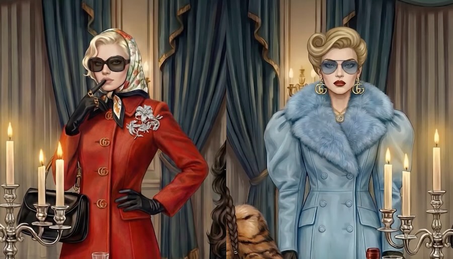 Nếu ở phiên bản lookbook, các nhân vật ấy hiện diện đậm tính dàn dựng thì với Mystery Unfolds, họ được đặt vào một bối cảnh sống động hơn: một buổi tiệc trong biệt thự, một vụ mất cắp trang sức, và một danh sách nghi phạm toàn những gương mặt quen thuộc của “La Famiglia”. Theo mô tả chính thức từ Gucci, người chơi được “mời” bước vào biệt thự của La Contessa sau khi món trang sức quý giá của bà biến mất, từ đó lần theo các manh mối để tìm ra kẻ đánh cắp giữa đêm tiệc.