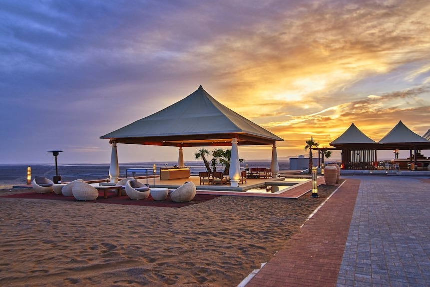 Giữa cát vàng mênh mông, nơi bầu trời hòa dường như hòa tan vào đường chân trời, Dunes by Al Nahda hiện lên như một ốc đảo huyền bí. Khi bước xuống khỏi xe, làn gió nóng mềm của sa mạc vờn qua làn da, mùi cát nồng nàn hòa cùng hương trà Oman thoảng nhẹ chào đón mỗi du khách vào một thế giới nơi thời gian dường như lắng lại. Tại đây, mọi giác quan được đánh thức: ánh hoàng hôn rực rỡ nhuộm vàng những đụn cát, tiếng cát xào xạc dưới chân lạc đà, vị cocktail mát lạnh và nụ cười chân thành của đội ngũ nhân viên. Dunes by Al Nahda không chỉ là nơi nghỉ dưỡng, mà là một hành trình cảm xúc, đưa du khách hòa mình vào nhịp sống đầy kỳ diệu của sa mạc Oman.