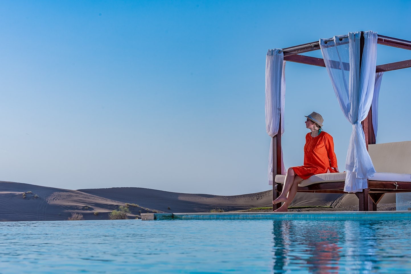 Trải nghiệm tại Dunes by Al Nahda là hành trình của chuyển động và cảm giác. Dune bashing đưa du khách lướt qua các đụn cát như vũ công trên sàn nhảy tự nhiên, trong khi hoạt động cưỡi lạc đà giúp bạn tận hưởng gió sa mạc nhè nhẹ vuốt qua tóc, tạo nên khoảnh khắc thư giãn trọn vẹn. Những ai tìm kiếm sự tĩnh lặng có thể đắm mình trong hồ bơi vô cực để ngắm nhìn sa mạc lan tỏa đến chân trời, hoặc thưởng thức liệu pháp spa độc đáo: vùi mình trong cát ấm, thư giãn cùng sữa chua mát lạnh và massage tinh dầu, trong khi dần dần hòa mình vào nhịp sống cổ xưa của vùng đất này.