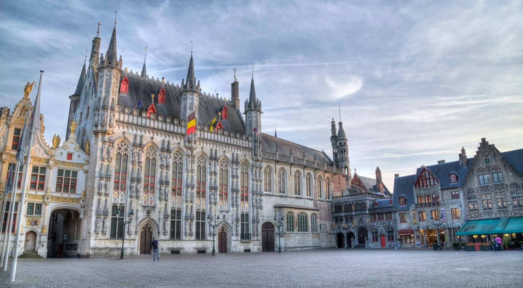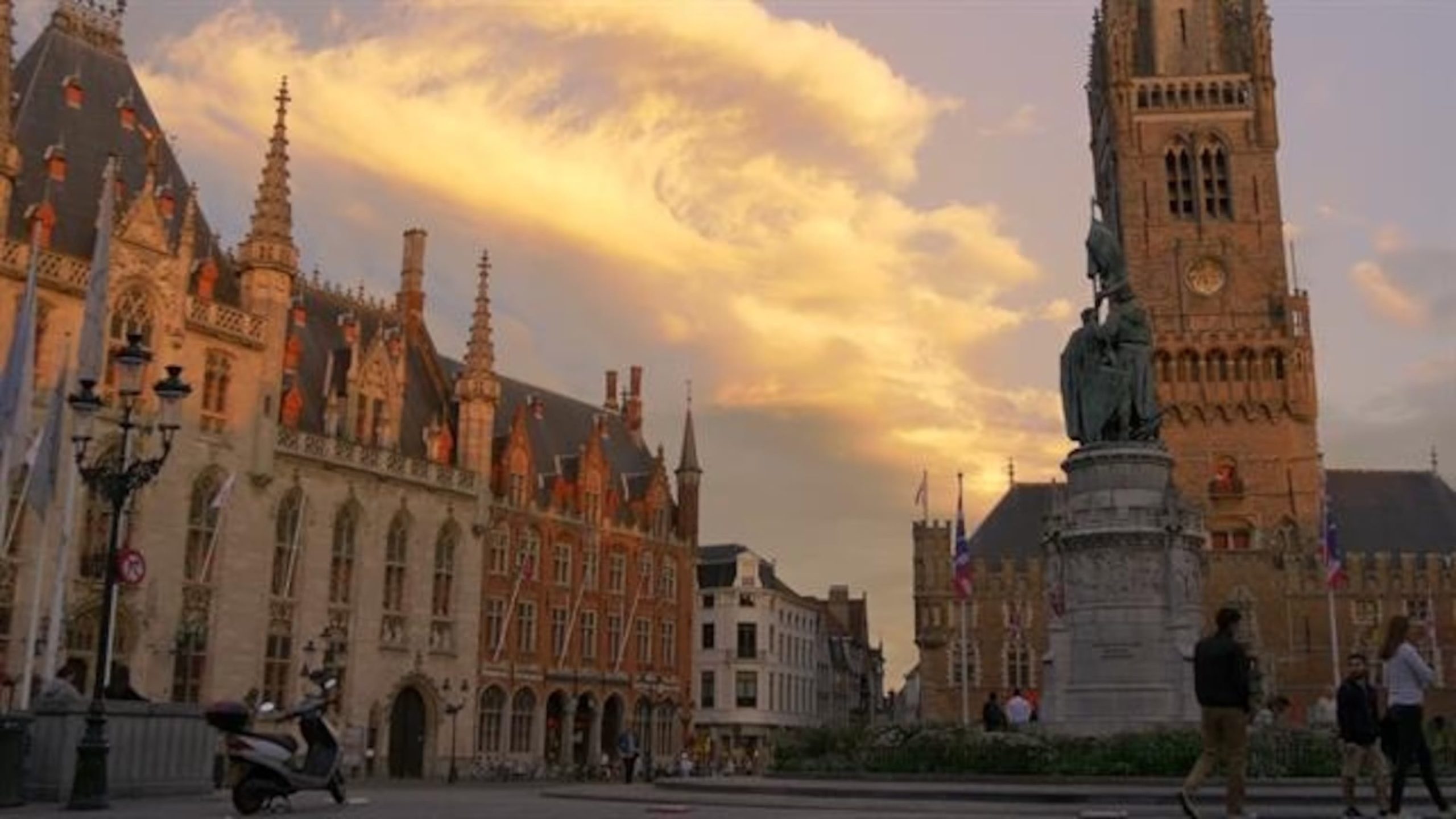 Từng là hải cảng sầm uất bậc nhất châu Âu ở thế kỷ 13 và 14, Bruges ngày nay vẫn giữ nguyên linh hồn của quá khứ qua những công trình cổ và dòng kênh hiền hòa. Quảng trường Markt là trái tim của thành phố, vẫn rộn ràng nhịp sống như thuở vàng son. Những ngôi nhà thương hội trang trí cầu kỳ đứng san sát nhau, mái bậc thang rực rỡ sắc màu. Vươn cao phía trên là tháp chuông Belfry từ thế kỷ 13, với 366 bậc xoắn ốc dẫn lên đỉnh – nơi dàn chuông 47 quả đã ngân vang suốt hơn 7 thế kỷ qua. Từ trên cao nhìn xuống, những mái ngói đỏ trải dài đến tận chân trời, xen giữa là những con kênh nhỏ lấp lánh như dải lụa thủy tinh phản chiếu ánh nắng ban mai.