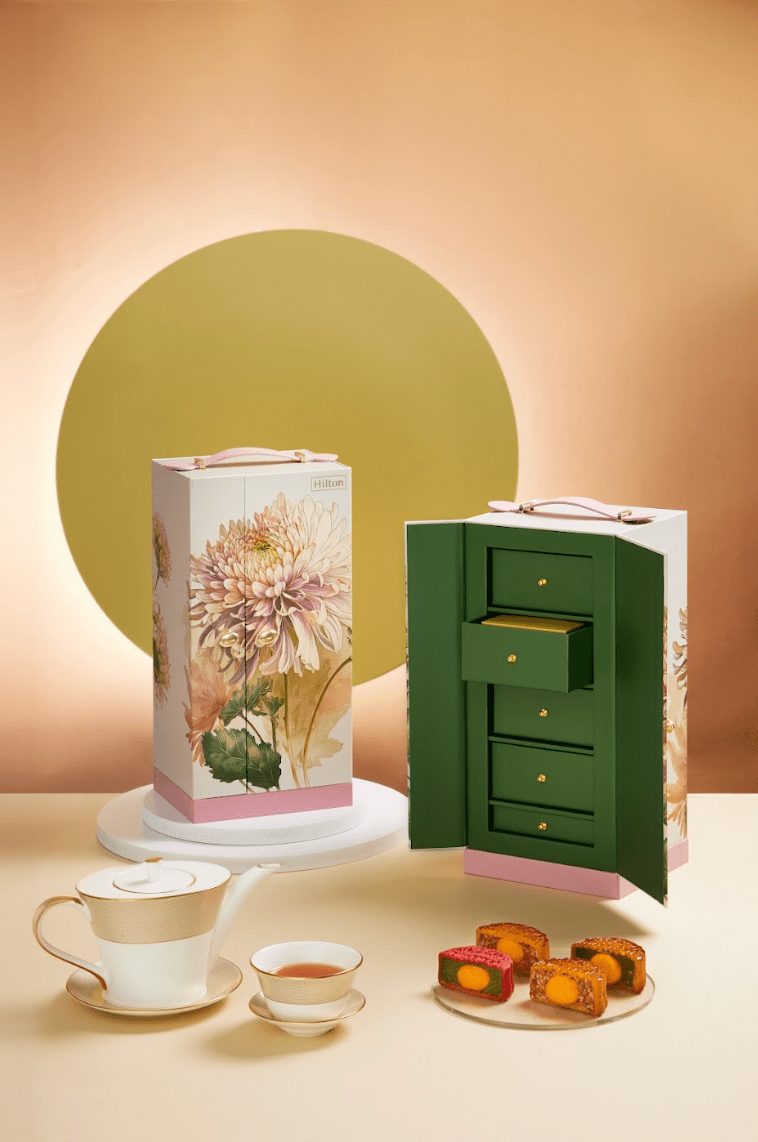 Với mong muốn gửi gắm thông điệp đoàn viên qua từng món quà ý nghĩa, Hilton Saigon giới thiệu ba phiên bản hộp bánh Trung thu cao cấp “Kim Viên” gửi gắm lời chúc cho sự may mắn và lan tỏa yêu thương với những giá trị bền vững trường tồn. Sắc xanh ngọc của hộp bánh ôm trọn tinh thần an lành, điểm xuyết họa tiết hoa cúc vàng ánh kim. Bốn chiếc bánh trung thu cùng hộp trà thượng hạng sẽ là một món quà ý nghĩa dành cho gia đình cùng nhau đón trăng, uống trà và thưởng bánh trong niềm yêu thương đong đầy.