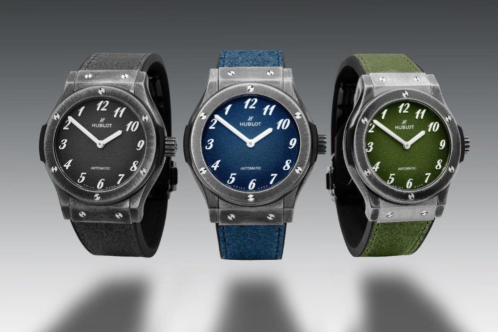 Bộ sưu tập được giới thiệu với ba phiên bản màu sắc riêng biệt — xanh dương, xanh lá và xám — mỗi phiên bản được sản xuất giới hạn 30 chiếc. Những sáng tạo đặc biệt này thể hiện một bước chuyển rõ nét trong triết lý chế tác đồng hồ cao cấp: Hublot cho rằng sự sang trọng đích thực không nằm ở việc duy trì một trạng thái hoàn hảo bất biến, mà nằm ở hành trình cải tiến để trở thành phiên bản duy nhất, như một chứng nhân thầm lặng cho một cuộc đời được sống trọn vẹn.