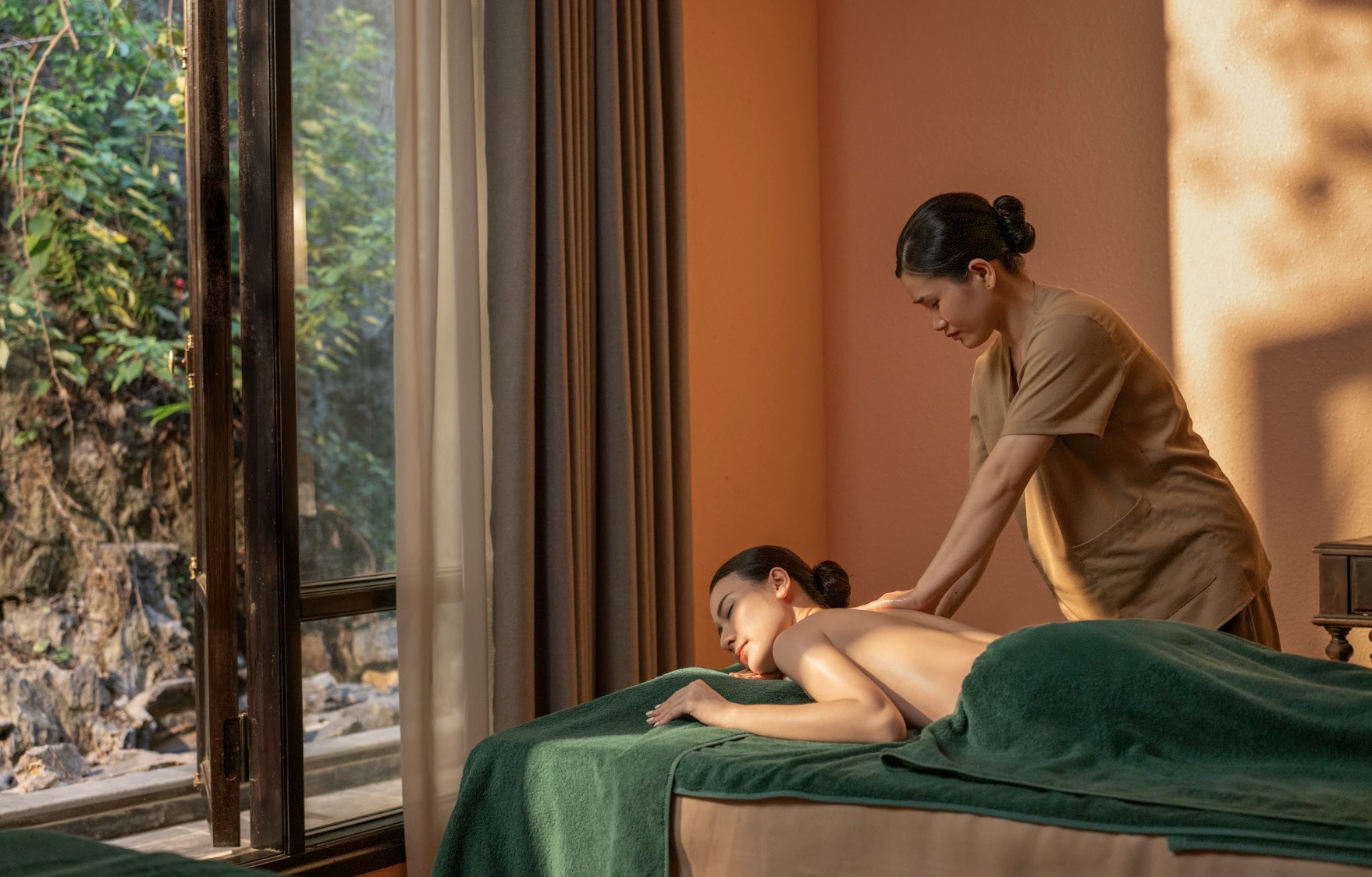 Đến với Chỉ Quán Spa, du khách được trải nghiệm các liệu trình trị liệu thư giãn, phục hồi năng lượng bằng tinh dầu và thảo mộc vườn. Mỗi liệu trình được thiết kế như một hành trình thiền trong sự “lặng” – nơi thân thể được chăm sóc, tâm trí được nghỉ ngơi và cảm xúc được chữa lành.