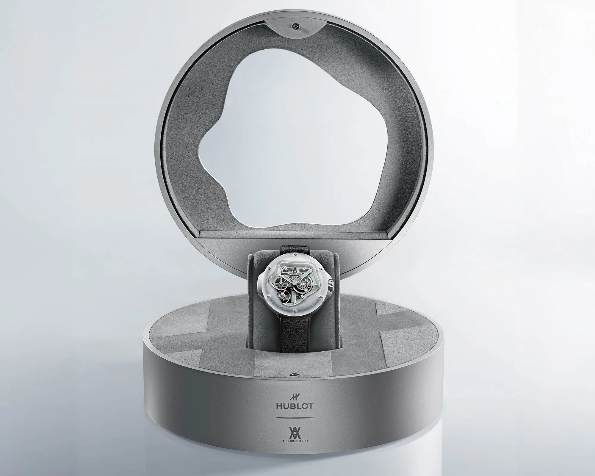 Chỉ 99 chiếc MP-17 Meca-10 Arsham Splash Titanium Sapphire được tạo ra như thể 99 khoảnh khắc bất khả sao chép. Mỗi chiếc đi kèm dây cao su đen chạm monogram Arsham, khóa bướm titanium và hộp bảo quản đặc biệt được thiết kế như một vật phẩm nghệ thuật.