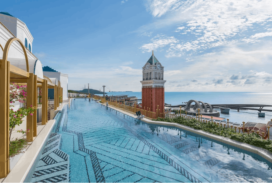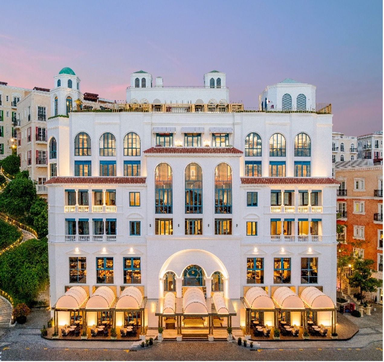 Tọa lạc trên sườn đồi đối diện tháp đồng hồ Campanile và hướng tầm nhìn về Cầu Hôn mang tính biểu tượng, công trình mang phong cách tân cổ điển pha với Địa Trung Hải này mở ra một chương trải nghiệm mới với 29 phòng suite và duplex, bốn không gian ẩm thực và giao lưu đặc sắc gồm quầy bar tầng thượng, nơi du khách có thể chiêm ngưỡng trọn vẹn sắc vàng rực rỡ của những buổi hoàng hôn trên đảo Phú Quốc.