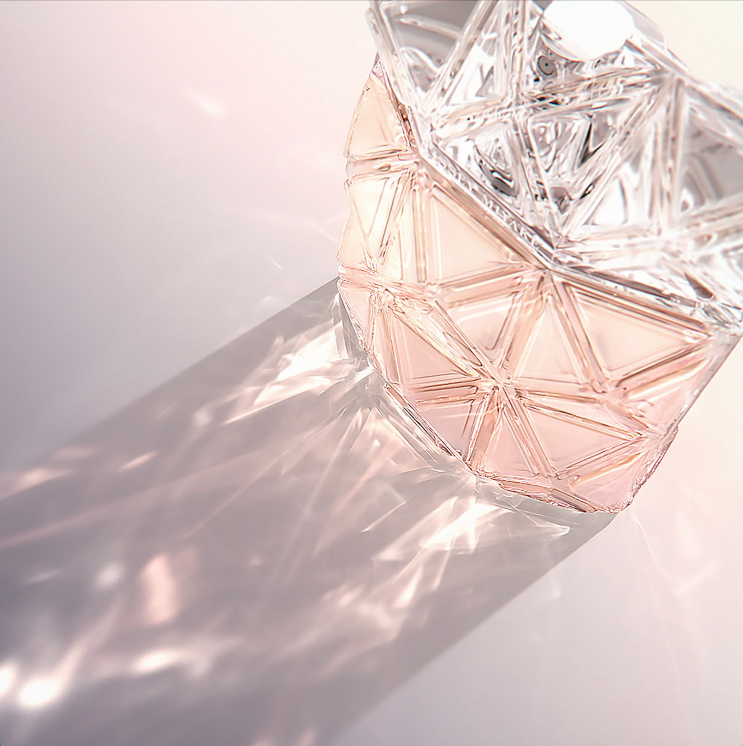 Được kiến tạo bởi MIYAKE DESIGN STUDIO, thân chai Lumière d’Issey là một kiệt tác kiến trúc hình học lấy cảm hứng từ những đường nét của chiếc túi xách huyền thoại. Với các mặt cắt tam giác chính xác, thân chai bắt trọn và khúc xạ ánh sáng, biến vật thể thành một chiếc kính vạn hoa động, phản chiếu sắc hồng ánh dương dịu dàng của buổi sớm mai.