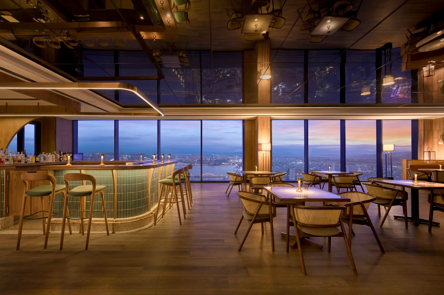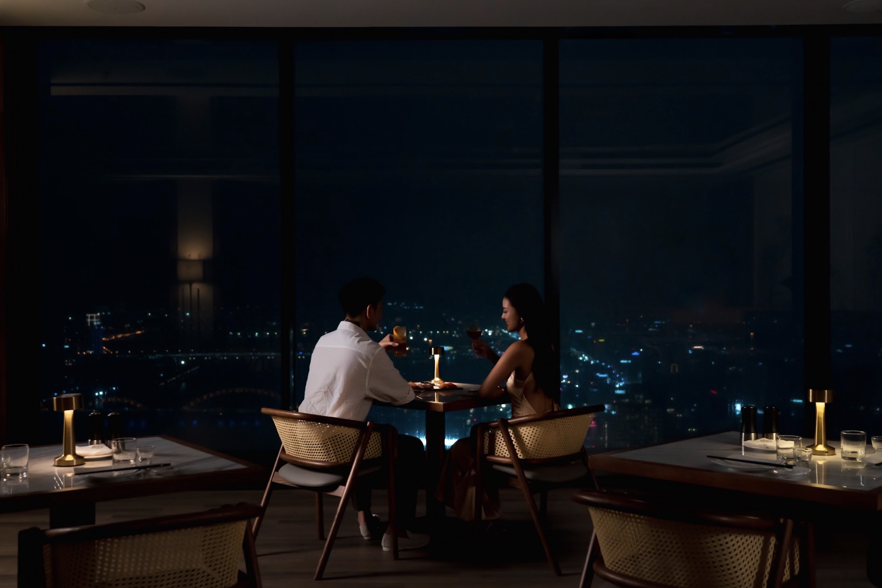Bước vào M45, Đà Nẵng về đêm hiện ra một vẻ đẹp khó gọi tên. Ánh đèn thành phố lấp lánh dưới chân, những điểm nhấn biểu tượng hiện lên rõ nét bên dòng sông Hàn yên ả. Mọi chuyển động dường như chậm lại, đủ để người ta không vội rời mắt, đủ để cảm nhận nhịp thở của thành phố khi màn đêm buông xuống.