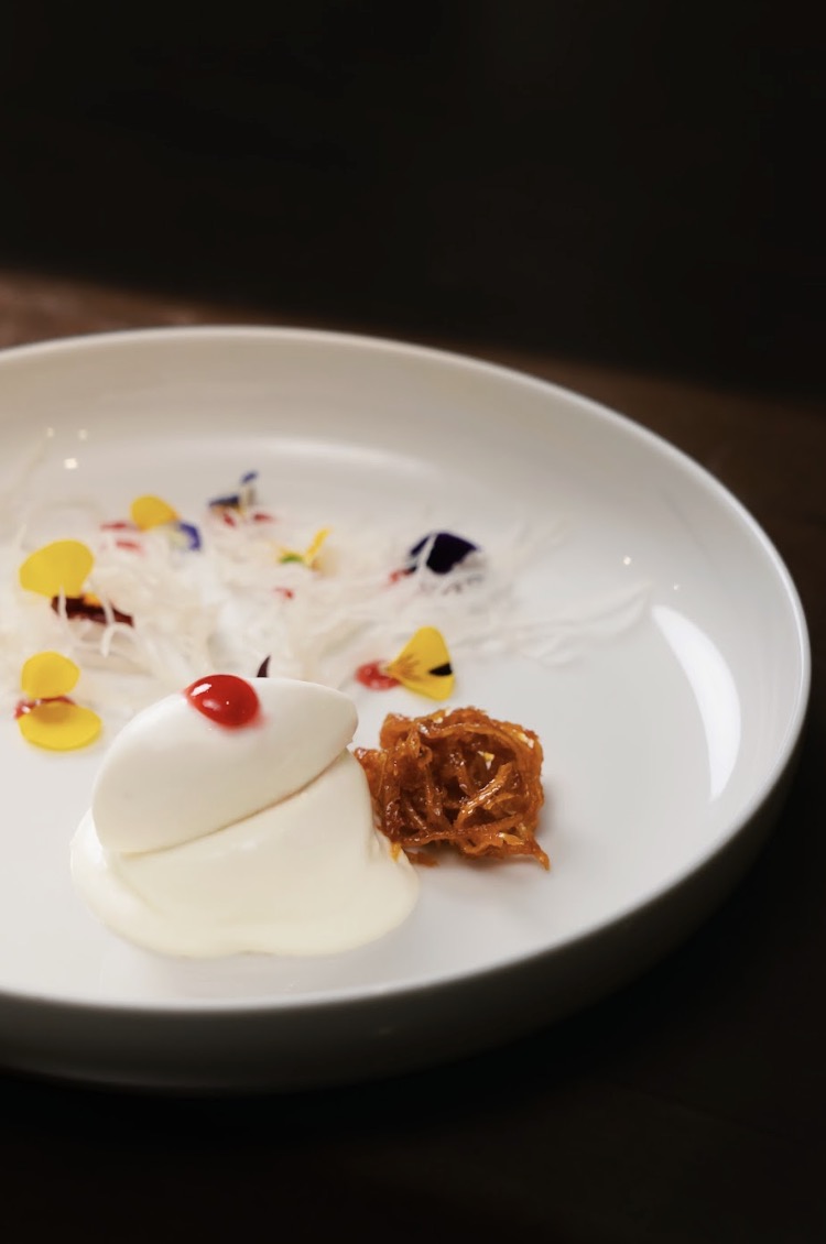 Khép lại là món tráng miệng Đậu Hũ & Rong Biển của Chef Trần Tài đến từ Renaissance Danang Hoi An Resort & Spa được lấy cảm hứng từ gánh tàu hũ người bà của mình. Chef Tài đã khéo léo kết hợp tàu hũ được làm đông bằng rong biển thay cho chất làm đông công nghiệp truyền thống, cùng kem vải và panna cotta mãng cầu – một món tráng miệng thanh khiết và hài hòa giữa biển và đất liền, giữa quá khứ và hiện tại.