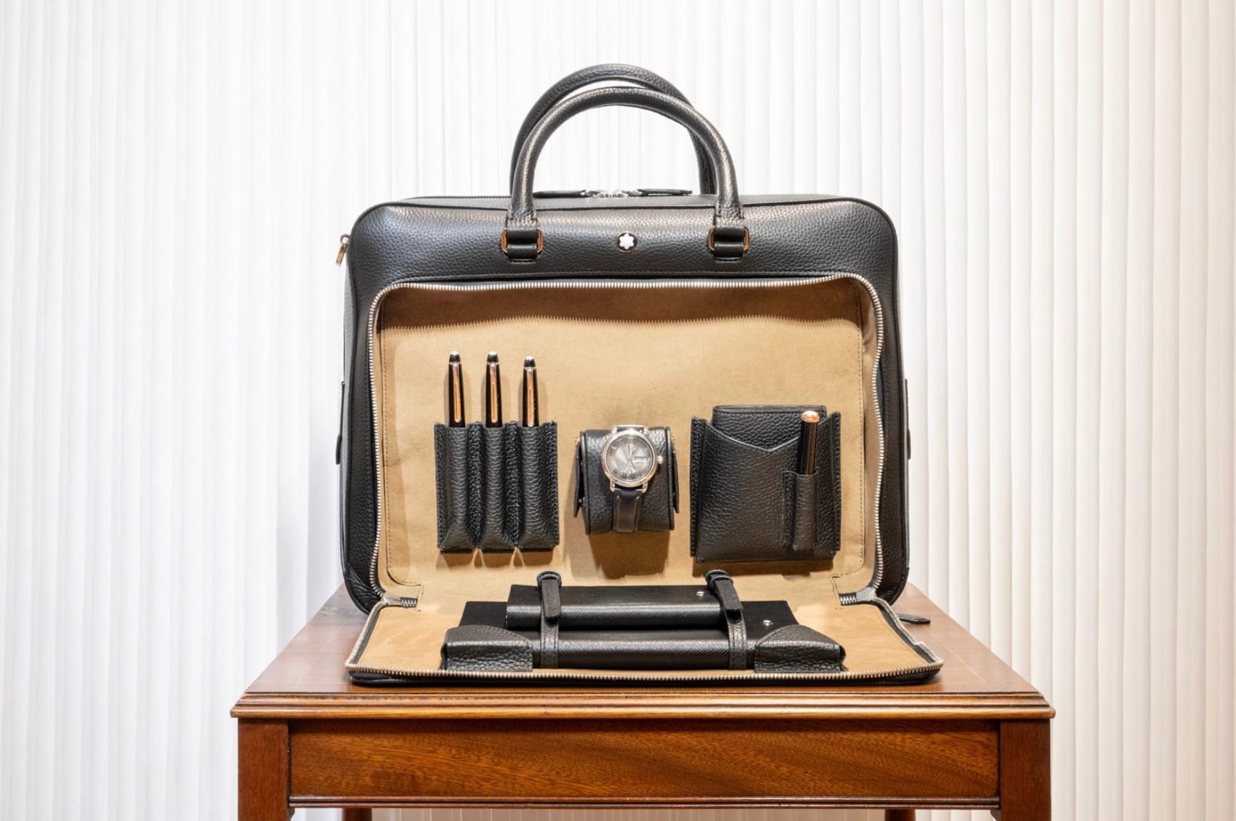 Các thiết kế biểu tượng mới của Montblanc tiếp tục được nâng tầm, bao gồm cặp tài liệu Writing Traveler Briefcase là tâm điểm lần này, được tái hiện trong mùa này với chất liệu da vân hạt, sau lần ra mắt đầu tiên bằng da cao cấp corteccia với hiệu ứng sfumato vào mùa Thu – Đông 2025. Phom dáng chủ đạo của thiết kế được bổ sung bởi những thiết kế mang tính di động mới, như túi đeo chéo Crossbody với ngăn riêng cho laptop và cáp sạc, Mini Crossbody, cùng thiết kế túi Clutch Document Holder, có thể kẹp gọn dưới cánh tay hoặc cầm tay linh hoạt.