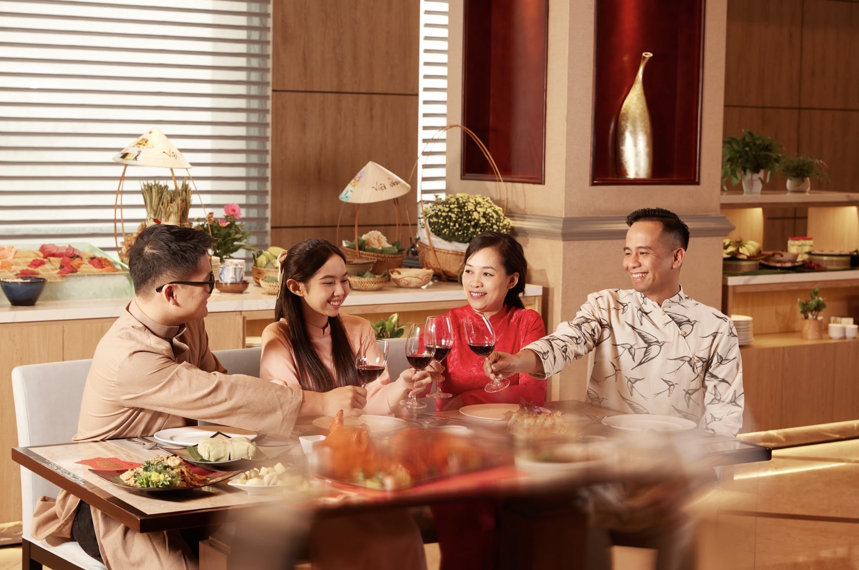 Mỗi buổi sáng bắt đầu thong thả với bữa sáng buffet tại nhà hàng Oven D’or, nơi những hương vị truyền thống và hiện đại giao thoa trong không khí đầu năm. Khi chiều xuống, cả gia đình hoặc nhóm bạn quây quần bên quầy buffet đầy đặn, đậm đà hương vị Tết, nơi những câu chuyện đầu xuân được sẻ chia trong không gian gần gũi và ấm cúng. Xen giữa những khoảnh khắc ấy là thời gian thư giãn tại Lobby Lounge, không gian mở cạnh sảnh chính, nhìn ra khu vườn xanh mát, nơi lý tưởng để nhâm nhi một ly thức uống và cảm nhận nhịp sống chậm rãi hiếm có của Hà Nội trong những ngày Tết.