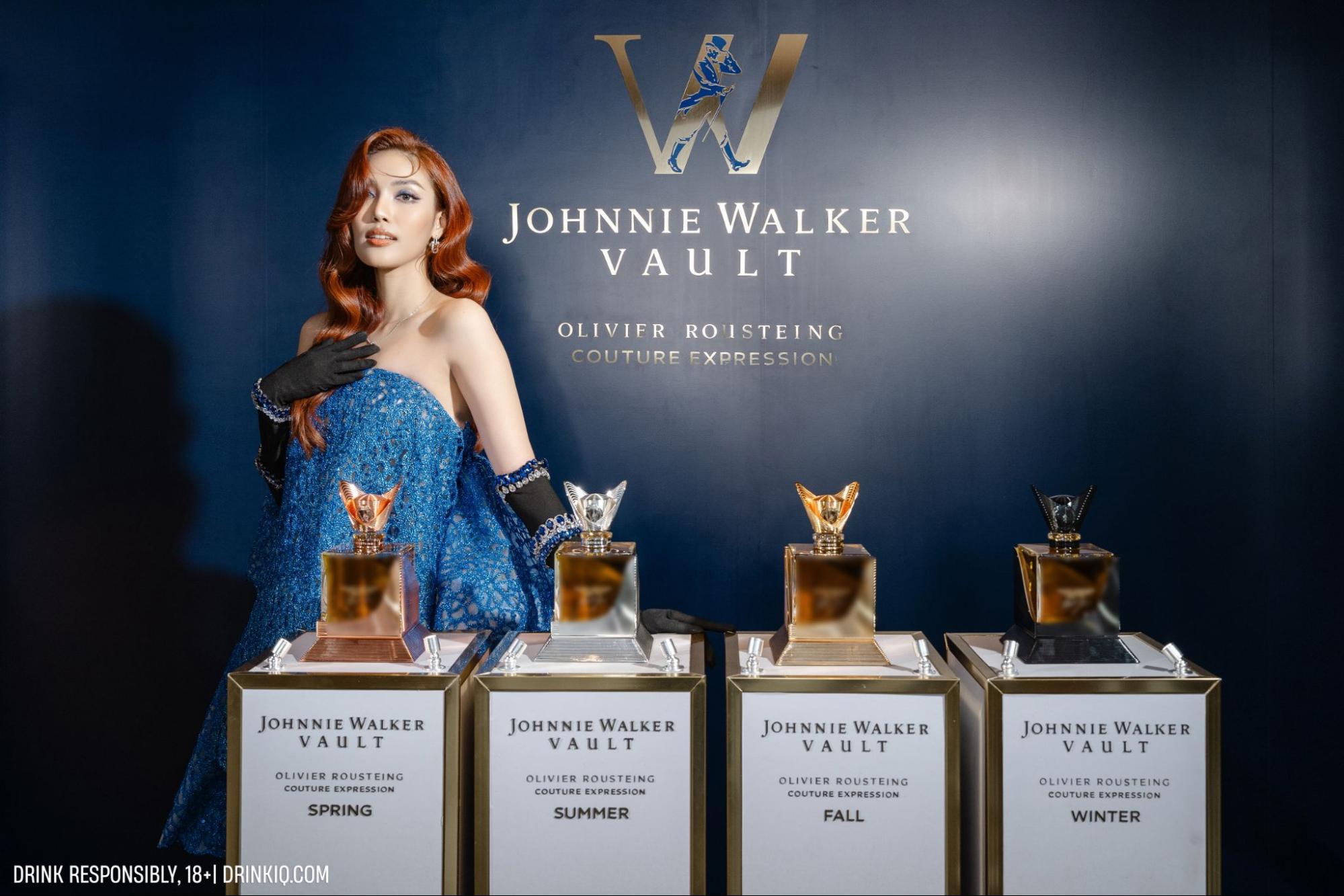 Siêu mẫu Lan Khuê bên cạnh bộ sưu tập Johnnie Walker Vault Couture Expression được lấy cảm hứng từ nhà thiết kế Olivier Rousteing.