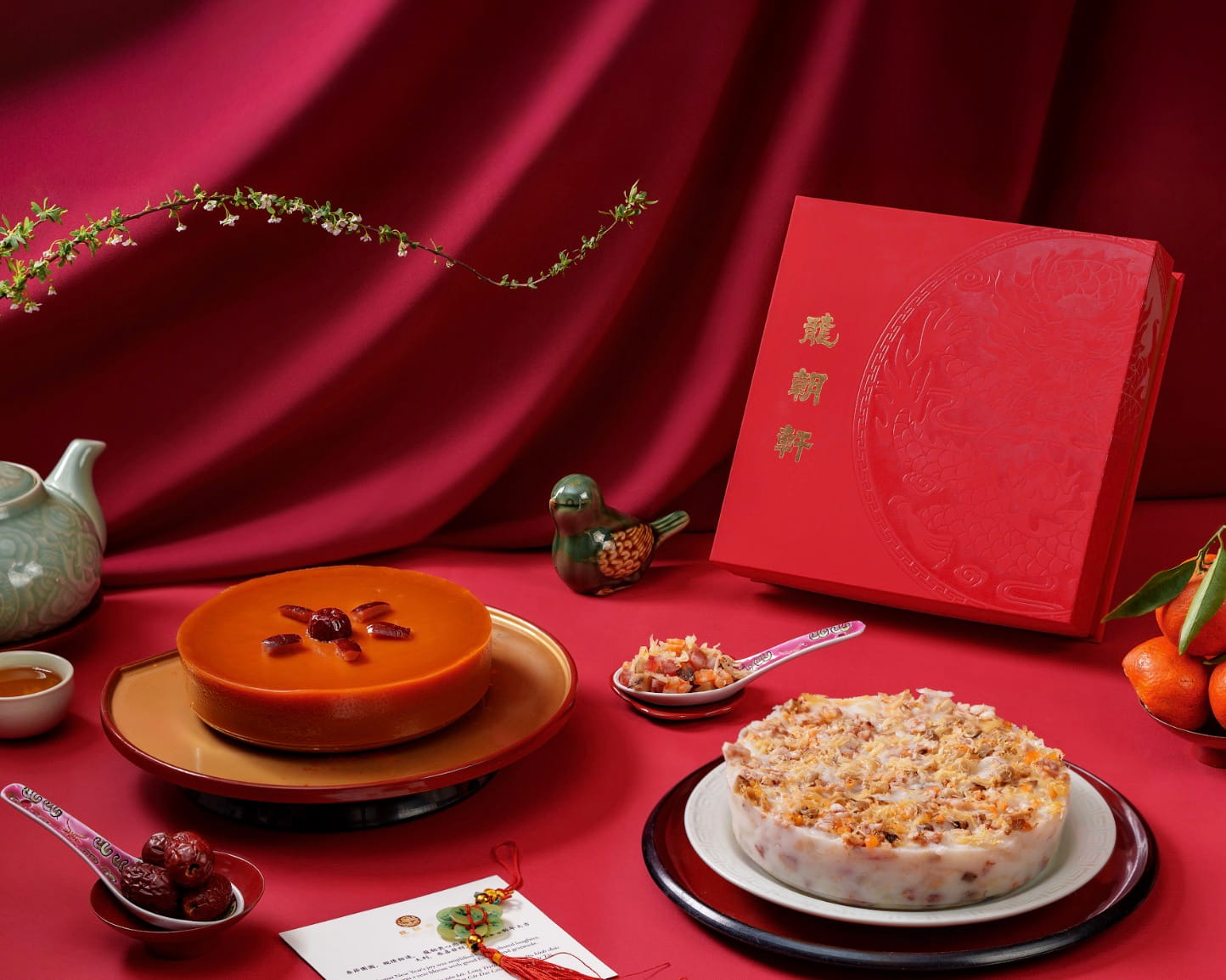 Bên cạnh nét sang trọng của Kim Bảo Tước, hộp quà Kim Long Cát Tường từ nhà hàng Michelin Long Triều lại dẫn dắt tâm hồn trở về với những giá trị nguyên bản. Tặng phẩm Bánh Tổ và Bánh Củ Cải được chế tác thủ công khơi gợi phong vị Tết Cổ Truyền ấm áp, gói trọn mong cầu về một năm mới thịnh vượng viên mãn.
