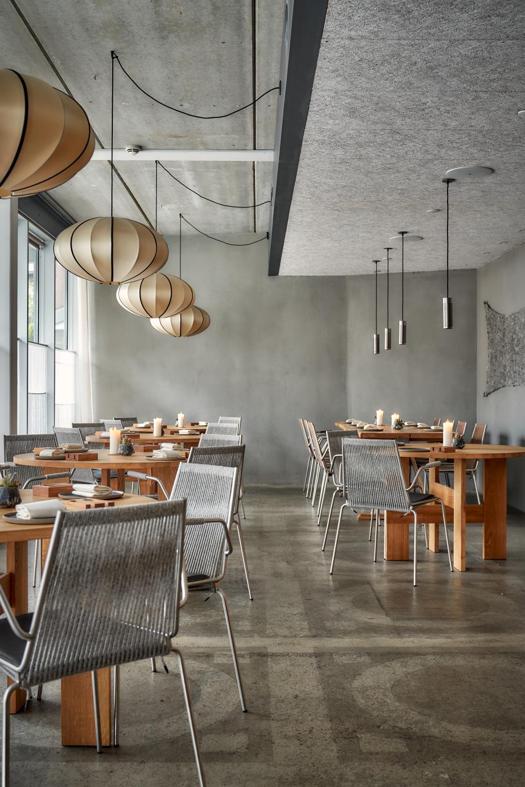 Nội thất nhà hàng phản ánh triết lý này. Những đường nét Scandinavia tinh tế, vật liệu tự nhiên và tông màu trầm tạo nên một bầu không khí yên tĩnh, ấm cúng, cho phép món ăn trở thành tâm điểm. Bếp mở mời thực khách tham gia vào quá trình sáng tạo, nuôi dưỡng cảm giác minh bạch và kết nối giữa đầu bếp và thực khách. Một bàn ăn chung được thiết kế chu đáo mang đến cho thực khách đi một mình một cách trải nghiệm thực đơn thân mật nhưng vẫn mang tính xã hội, củng cố sự chú trọng của Paz vào lòng hiếu khách cũng như ẩm thực.
