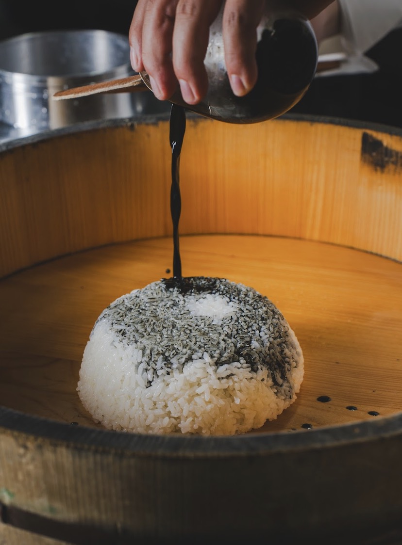 Nếu wabi-sabi là tinh thần của SABI Omakase, thì Kuro-shari chính là nơi mọi câu chuyện bắt đầu. Là yếu tố quyết định đến hơn 80% vị ngon của một miếng sushi, Kuro-shari được SABI chăm chút từ việc chọn gạo, độ mài, nhiệt độ nấu cho đến kỹ thuật phối trộn. Cơm được trộn từ giấm đen ủ lâu năm từ gạo lứt cùng bột binchotan, loại than hoạt tính có khả năng làm sạch tạp chất và kim loại nặng trong cá biển.