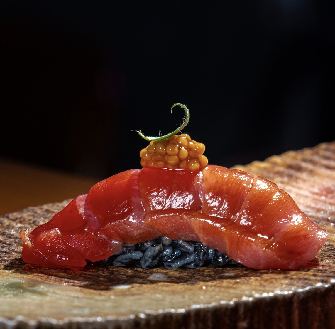 Mỗi hành trình omakase được dẫn dắt bằng những nguyên liệu ở trạng thái đẹp nhất: các phần cá ngừ vây xanh như Chutoro và Otoro ủ khô trên 21 ngày, Bafun uni ngọt sâu, bào ngư đen giàu kết cấu.