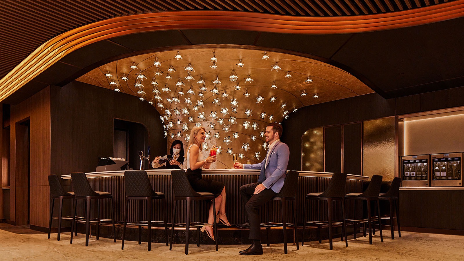 Lounge mới khai trương này không đơn thuần là chỗ chờ. Mỗi góc nhỏ, từ ghế wingback ôm lấy người ngồi, đến những private pods yên tĩnh, đều như mời gọi du khách thả mình vào nhịp sống chậm lại để chuẩn bị cho hành trình phía trước. Những chiếc đèn chùm thủy tinh của LASVIT treo lơ lửng, rực sáng như những vì sao thu nhỏ, khiến khoảnh khắc chờ đợi trở nên thi vị hơn bất cứ khi nào.
