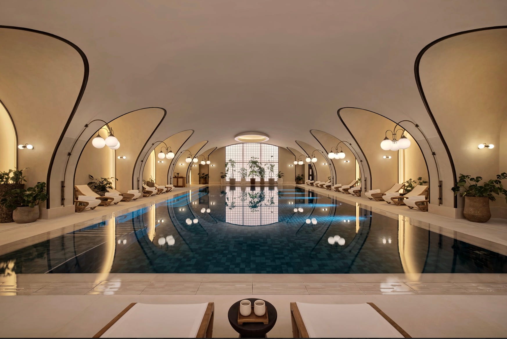 Bên cạnh việc sở hữu hồ bơi magnesium (hồ bơi được bổ sung khoáng chất) đầu tiên tại London, giúp phục hồi cơ bắp và điều hòa hệ thần kinh, khu spa còn có hồ bơi trong nhà dài 20 mét, phòng thể hình rộng 325 m² cùng các phòng tập yoga và studio chuyển động chánh niệm. Hệ thống 13 không gian chăm sóc sức khỏe và 6 phòng trị liệu bao gồm các liệu pháp áp lạnh (cryotherapy), liệu pháp nổi (flotation), trị liệu ánh sáng đỏ, phòng tắm hơi công cộng hammam truyền thống và phòng trải nghiệm cảm giác. Biohack Recovery Lounge – được thiết kế nhằm phục hồi nhanh hiệu suất và tái tạo năng lượng – mang đến các liệu trình cá nhân hóa kết hợp liệu pháp trường điện từ xung (PEMF), trị liệu âm thanh, ủng nén khí, đồ ép hơi, kích thích điện cơ, bệ rung và bàn kéo giãn cột sống.