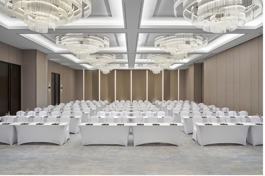 Hệ thống phòng họp và hội nghị đẳng cấp với tổng diện tích hơn 500m² được bố trí linh hoạt, đáp ứng mọi nhu cầu từ các cuộc họp riêng tư đến những sự kiện quy mô lớn. Phòng đại tiệc (Grand Ballroom) trần cao 4,75m, sức chứa hơn 300 khách, cùng các phòng họp nhỏ hiện đại, là lựa chọn lý tưởng cho những buổi hội nghị, tiệc chiêu đãi hay sự kiện đặc biệt.