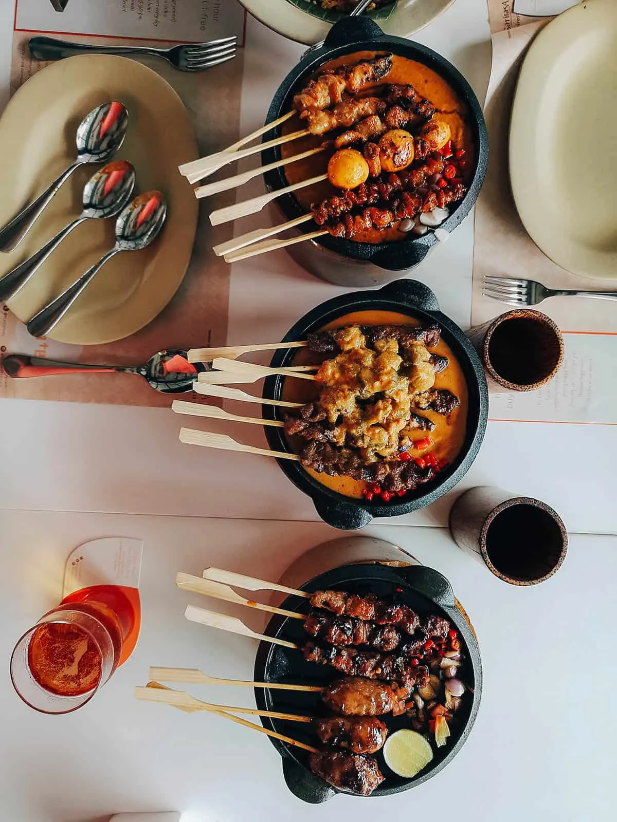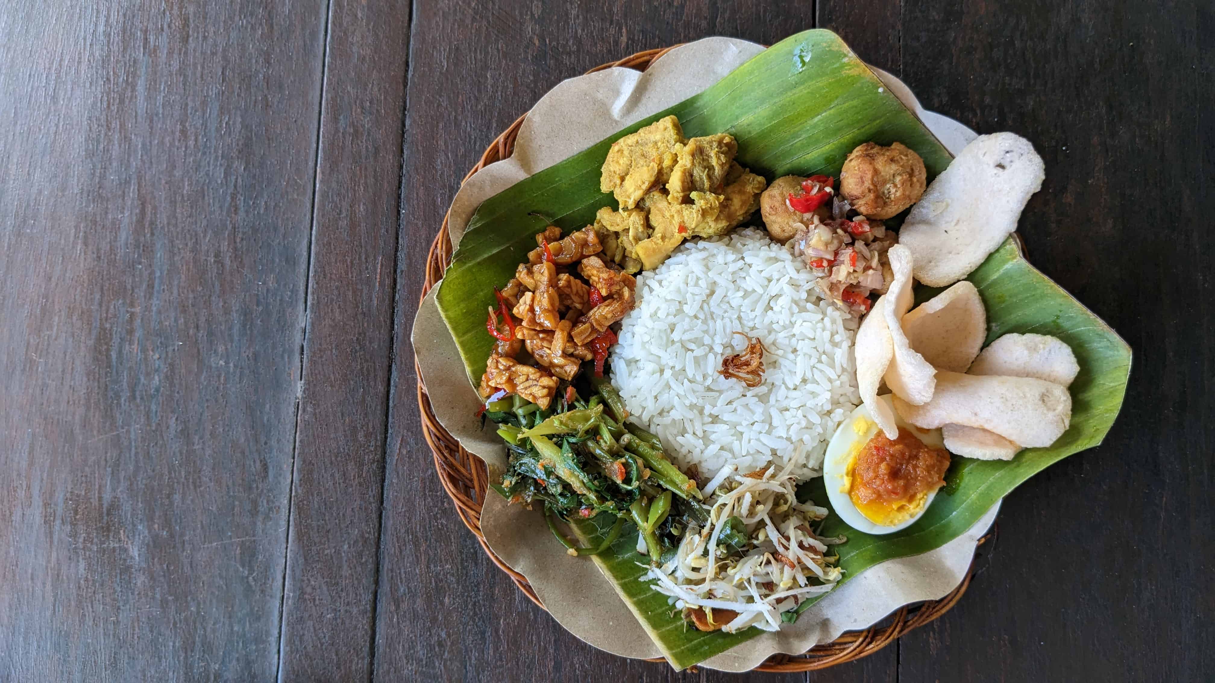Xa hơn về phía đông, Bali mang đến một hương vị khác biệt. Tại đây, các loại thảo mộc tươi và hỗn hợp gia vị từ dừa chiếm ưu thế. Các món ăn như babi guling, món heo sữa quay xiên phổ biến trong các lễ hội và saté lilit – xiên thịt băm ướp sả, thể hiện sự sáng tạo với gia vị và cách trình bày. Lawar, món salad gồm rau xanh, dừa và thịt băm, được xếp lớp và ướp gia vị thật cân bằng và gắn liền với các nghi lễ địa phương. Trên các đảo lân cận Nusa Tenggara, hải sản trở thành điểm nhấn, thường được nướng hoặc hầm với các loại gia vị địa phương, phản ánh truyền thống hàng hải của vùng.