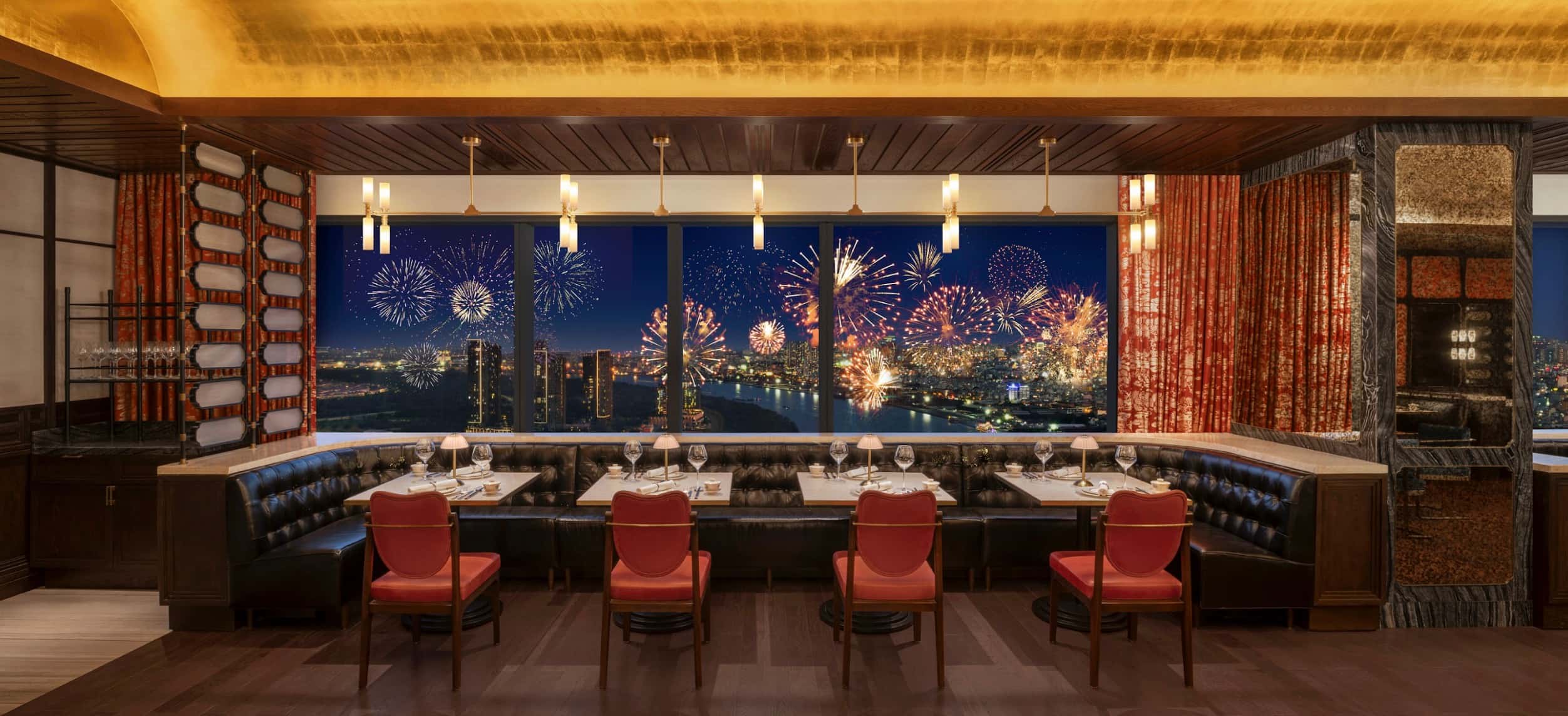 Đặc biệt hơn, với vị trí tầng 39 và 40 của khách sạn Hilton Saigon, khi bạn sử dụng dịch vụ tại Residence Eleven, hay Song Bar, bạn sẽ có cơ hội ngồi vào “hàng ghế đầu” trực diện nhất để chứng kiến màn pháo hoa trên sông Sài Gòn. Dù bạn chọn Set Menu đặc biệt cùng hương vị ẩm thực Quảng Đông tại Residence Eleven hay thư giãn cùng các thức uống phong cách tại Song Bar, những trải nghiệm ở đây sẽ mang đến một đêm ăn mừng đầy ấn tượng và đáng nhớ.