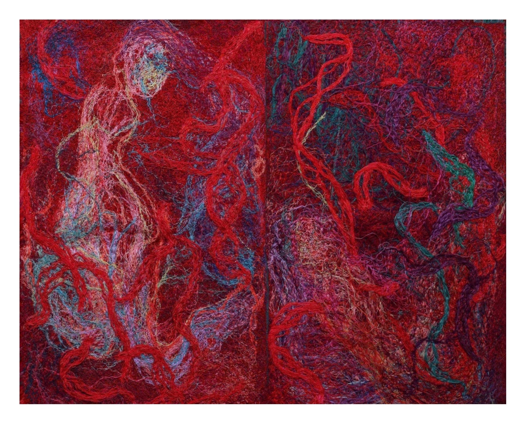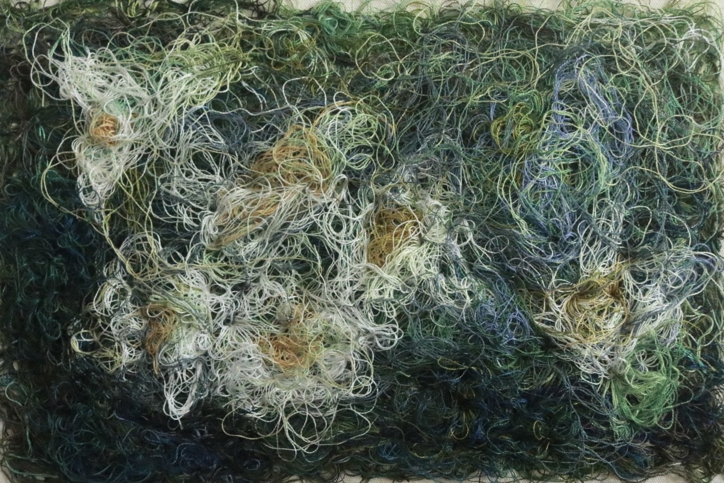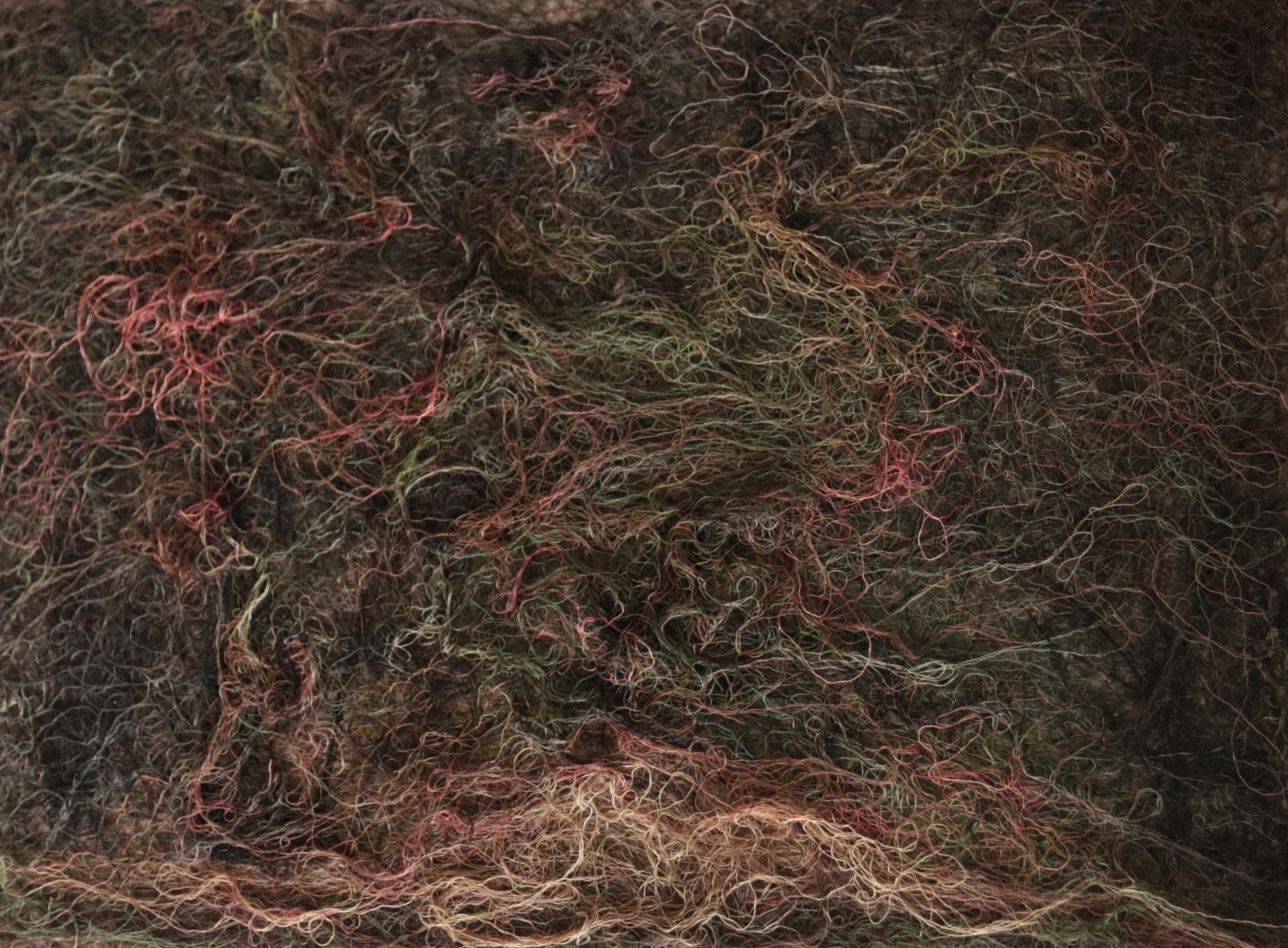 (Các sợi màu hòa quyện, tạo chiều sâu và kết cấu cho bề mặt tác phẩm. Ảnh: Nghệ sĩ cung cấp)
