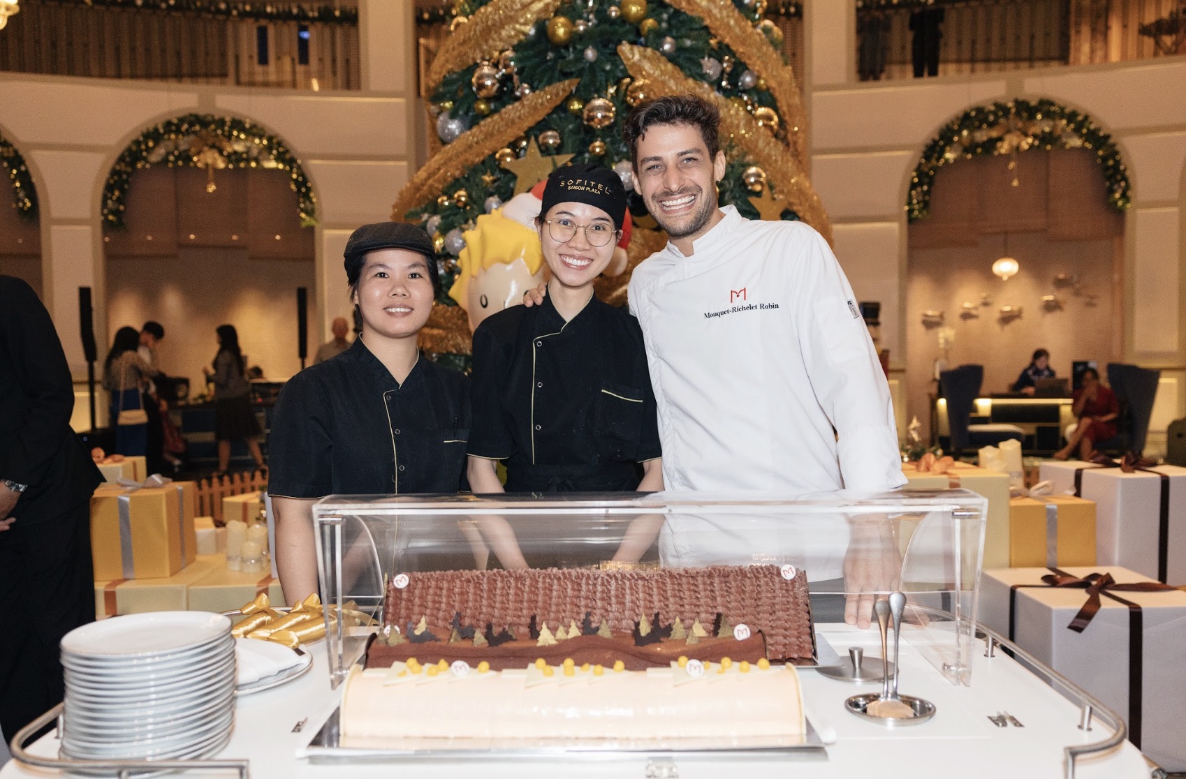 Đầu bếp bánh ngọt danh tiếng Robin Moquet đã chủ trì nghi thức cắt Logcake với các hương vị độc đáo ginger bread bánh gừng, hạt hồ đào và xoài, và sô-cô-la và va-ni-la, gửi gắm lời chúc về một mùa lễ hội ngọt ngào và sung túc.