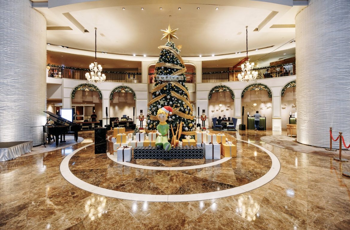 Lấy cảm hứng từ Candle Ritual (La Lumière) – nghi thức tôn vinh sự thanh lịch của Paris, Kinh đô Ánh sáng – và thế giới thi vị của Hoàng tử bé (Le Petit Prince), chủ đề Giáng sinh năm nay tại Sofitel Saigon Plaza được kiến tạo như một dải ngân hà thu nhỏ, nơi ánh sáng trở thành chất liệu dẫn dắt câu chuyện. Trên nền cây Thông Giáng sinh lộng lẫy, dải Golden Stiff Tulle óng ánh uốn lượn quanh thân cây, mô phỏng quỹ đạo của những vì sao, gợi nhắc chiếc khăn quàng cổ quen thuộc của Hoàng tử bé.