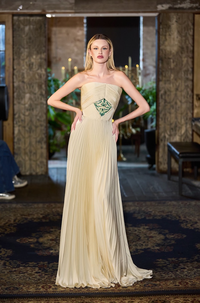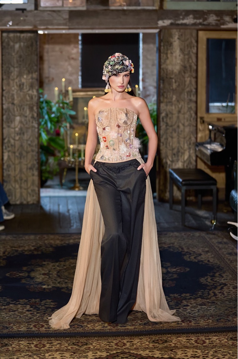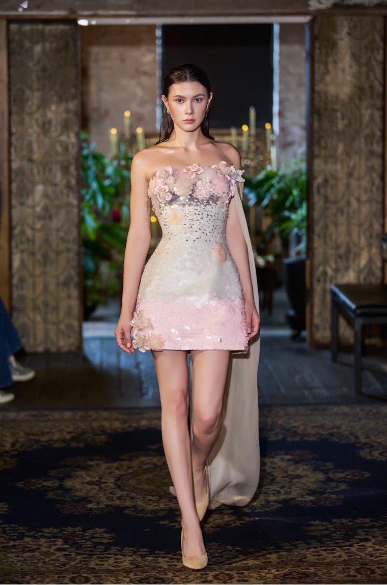 Khi những thiết kế xuất hiện trên sàn diễn, bao trùm khán vòng là một khung cảnh lãng mạn, đầy nghệ thuật, mang lại một sự tương phản thú vị với vẻ hiện đại, sôi động của thành phố New York.