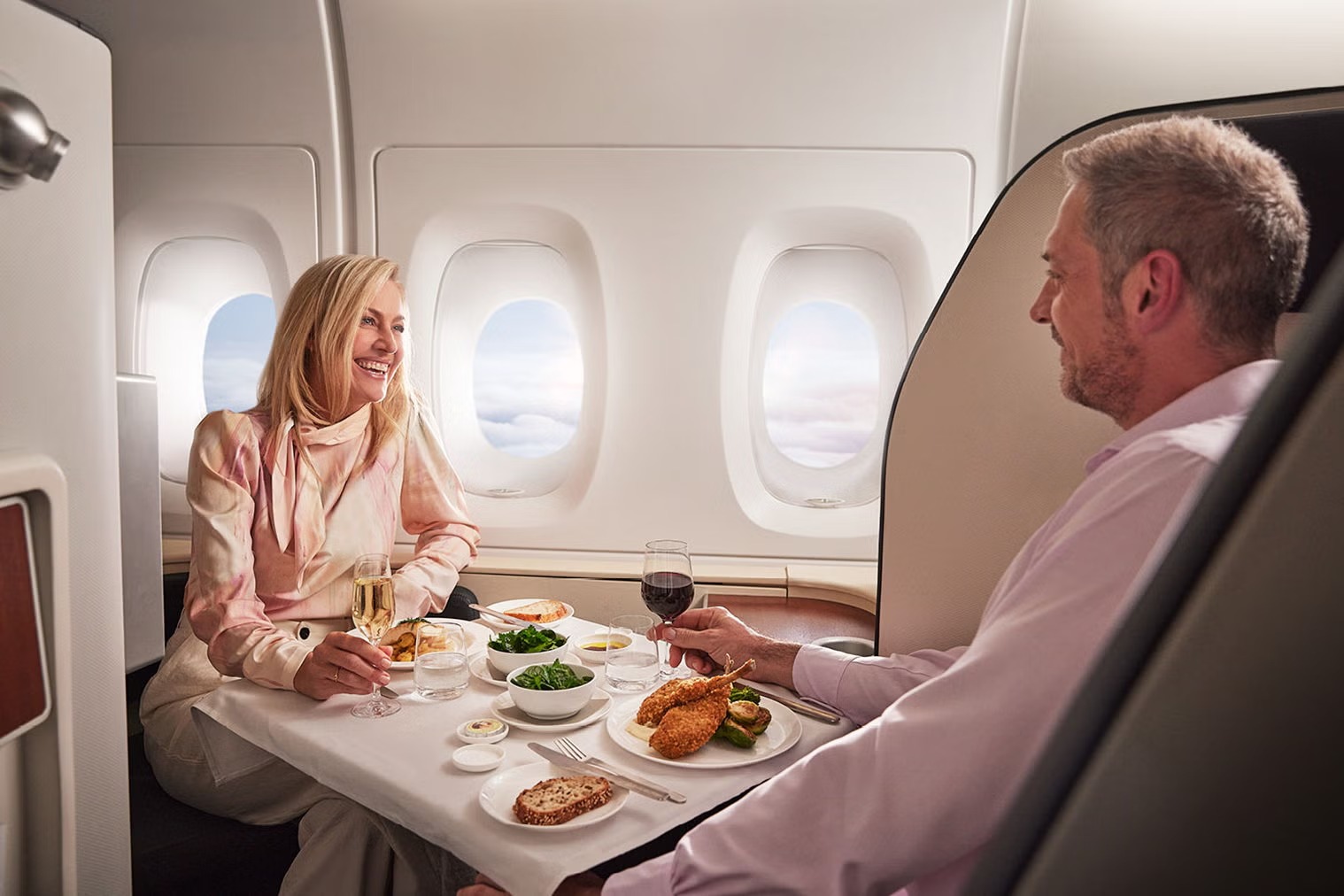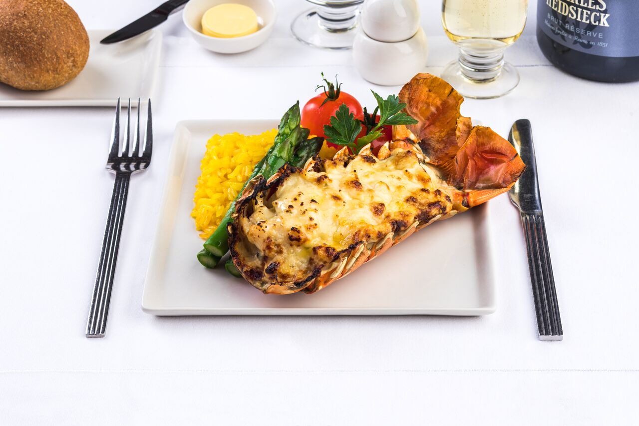 Qantas lại kể câu chuyện ẩm thực bằng ngôn ngữ nước Úc. Dưới dấu ấn của đầu bếp Neil Perry, thực đơn first class tôn vinh nguyên liệu bản địa kết hợp kỹ thuật hiện đại, từ hải sản, rau xanh cho đến các món tráng miệng mang hơi hướng châu Á. Rượu vang được tuyển chọn kỹ lưỡng, giúp mỗi bữa ăn trở thành một lát cắt tinh tế phản ánh bản sắc nước Úc.