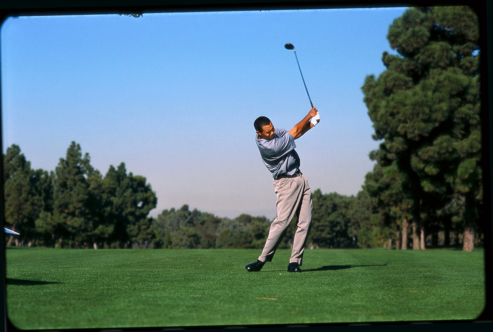 Chuyển động ngang mạnh mẽ ấy là sản phẩm của thời đại. Trong kỷ nguyên gậy gỗ persimmon, nhiều golfer buộc phải đẩy hông rõ rệt về phía mục tiêu để tạo lực. Với Tiger, điều đó còn mang tính tất yếu: kiểu cầm gậy mạnh kết hợp với mặt gậy khép đòi hỏi một cú trượt hông quyết liệt nhằm ngăn mặt gậy tiếp tục khép thêm khi tiếp xúc bóng.