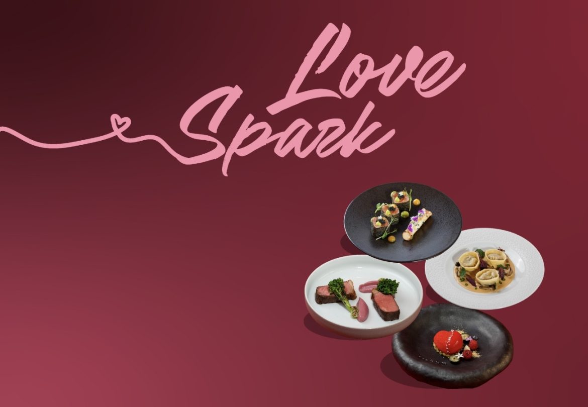 Dưới ánh đèn và nhịp điệu chậm rãi của buổi tối, Love Spark mở ra như một hành trình cảm xúc tinh tế. Khởi đầu là cá hồi Na Uy áp chảo, điểm xuyết tiêu Phú Quốc, chanh dây và trứng cá tầm. Mạch cảm xúc tiếp nối với ravioli nhân gan ngỗng trong làn sốt mượt mà, mang đến dư vị êm ái. Thăn bò Wagyu nướng kết hợp sốt tiêu Phú Quốc tạo nên dấu ấn đậm đà, tròn vị. Cuối cùng, bữa tối khép lại bằng món tráng miệng Sweetheart – sự hòa quyện nhẹ nhàng của dứa, vani và sô cô la trắng, để lại dư âm ngọt ngào và tinh tế.