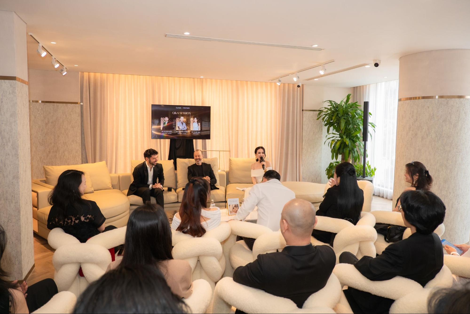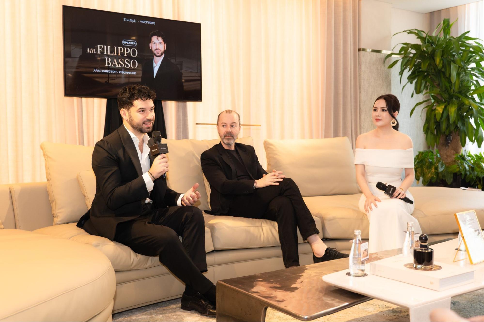Phiên thảo luận có sự tham gia của ông Filippo Basso, ông Alfredo Aguirre – Brand Director của EuroStyle, cùng các kiến trúc sư đang triển khai nhiều dự án quy mô tại Việt Nam. Cuộc đối thoại mang đến góc nhìn đa chiều, kết nối tầm nhìn toàn cầu của Visionnaire với thực tiễn sáng tạo trong bối cảnh thị trường nội thất siêu cao cấp trong nước.