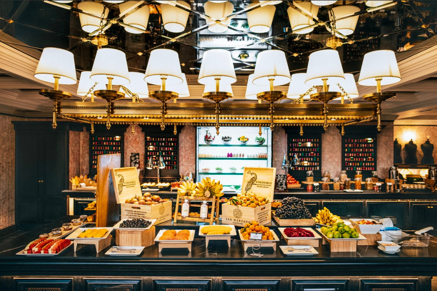 Hệ thống ẩm thực gồm 8 nhà hàng và quầy bar, được bố trí khéo léo nhằm tạo nên những không gian riêng tư và giàu cảm xúc. Mare là điểm nhấn nổi bật, mang đến ẩm thực Ý và phong vị Địa Trung Hải với nguyên liệu tươi của địa phương, pasta thủ công, rượu vang chọn lọc và các món tráng miệng tinh tế.